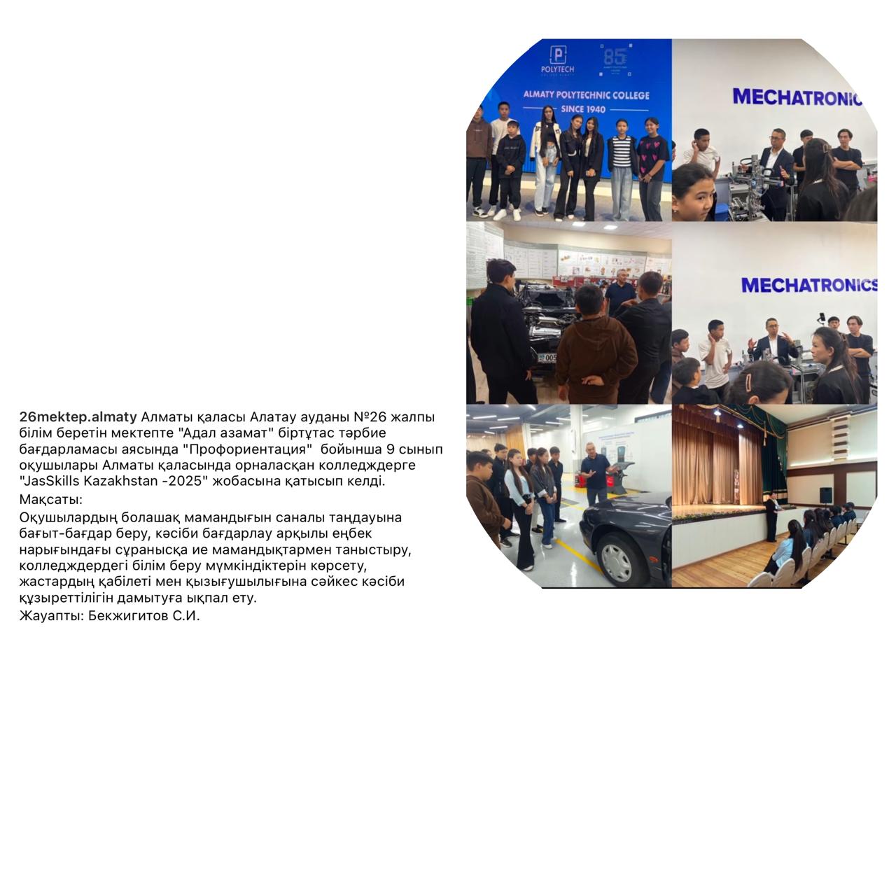 » "Адал Азамат " біртұтас тәрбие бағдарламасы аясында "Профориентация"