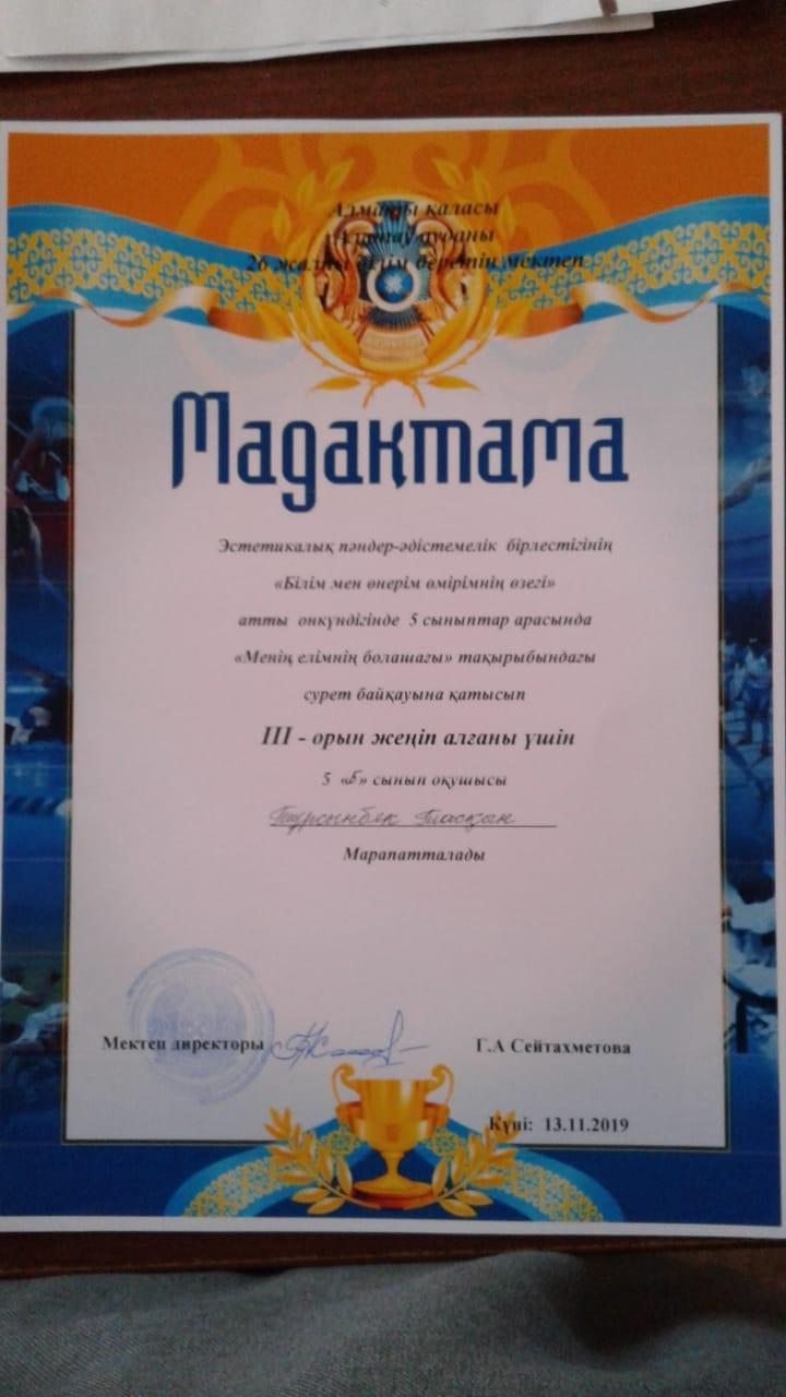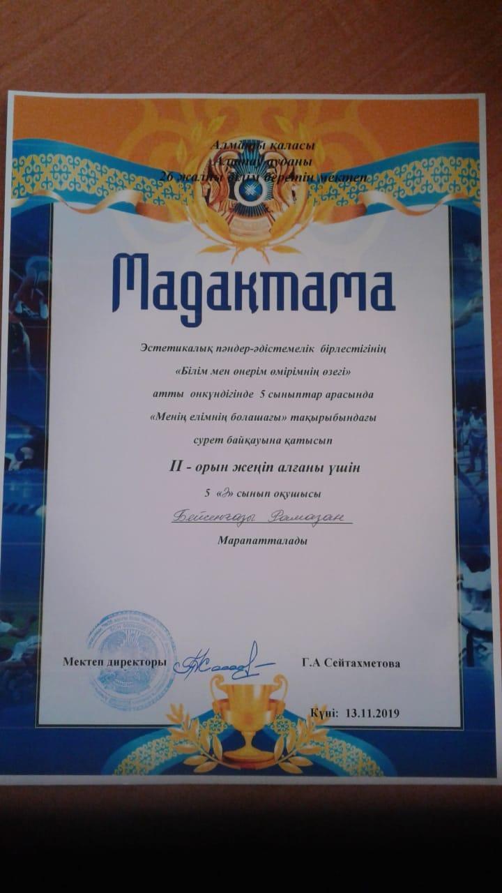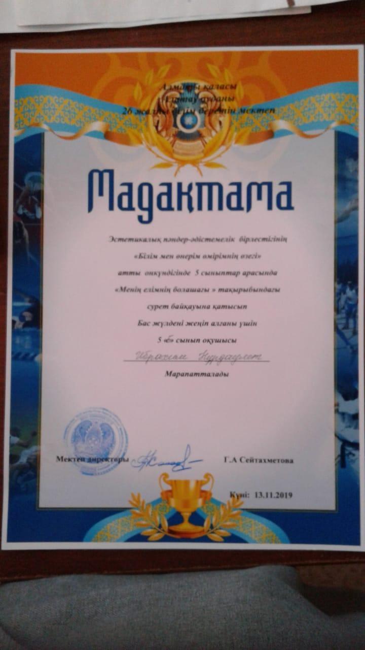 13 ноябрь 2019 0 1 2 3 4 5 Қазақстандық патриотизмге, азаматтық және құқықтық тәрбиеге байланысты сурет байқауы Қазақстандық патриотизмге, азаматтық және құқықтық тәрбиеге байланысты сурет байқауыМенің елімнің болашағы.5 сыныптар арасында сурет байқауы. Жауапты көркем еңбек пәні мұғалімі: Дүйсенбекова Айгул Сериковна