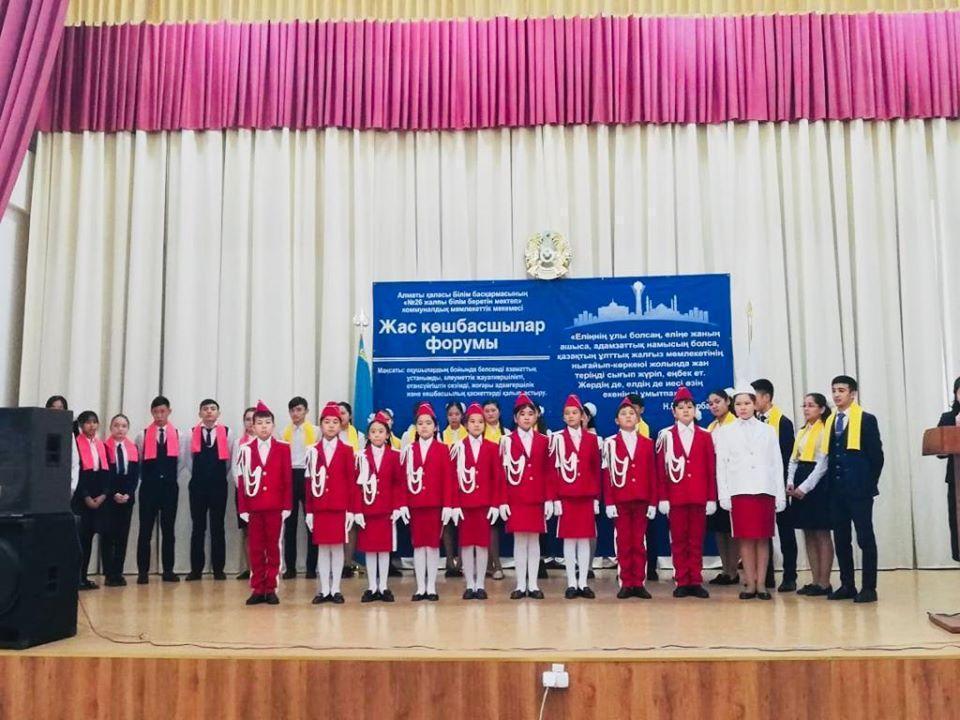 Алматы қаласы Алатау ауданы №26 жалпы білім беретін мектепте, 28.11.2019 жылы "Көшбасшылар форумы" өткізілді. Мақсаты: «Мәңгілік ел» жалпыұлттық идеясының құндылықтарын яғни,оқушылардың бойында белсенді азаматтық ұстанымды, әлеуметтік жауапкершілікті, отансүйгіштік сезімді, жоғары адамгершілік және көшбасшылық қасиеттерді қалыптастыру. Мектебімізде құрылған ұйымдардың мүшелерімен таныстыру. Ұйым мүшелерінің өз мақсаттары мен міндеттерімен таныстыру.