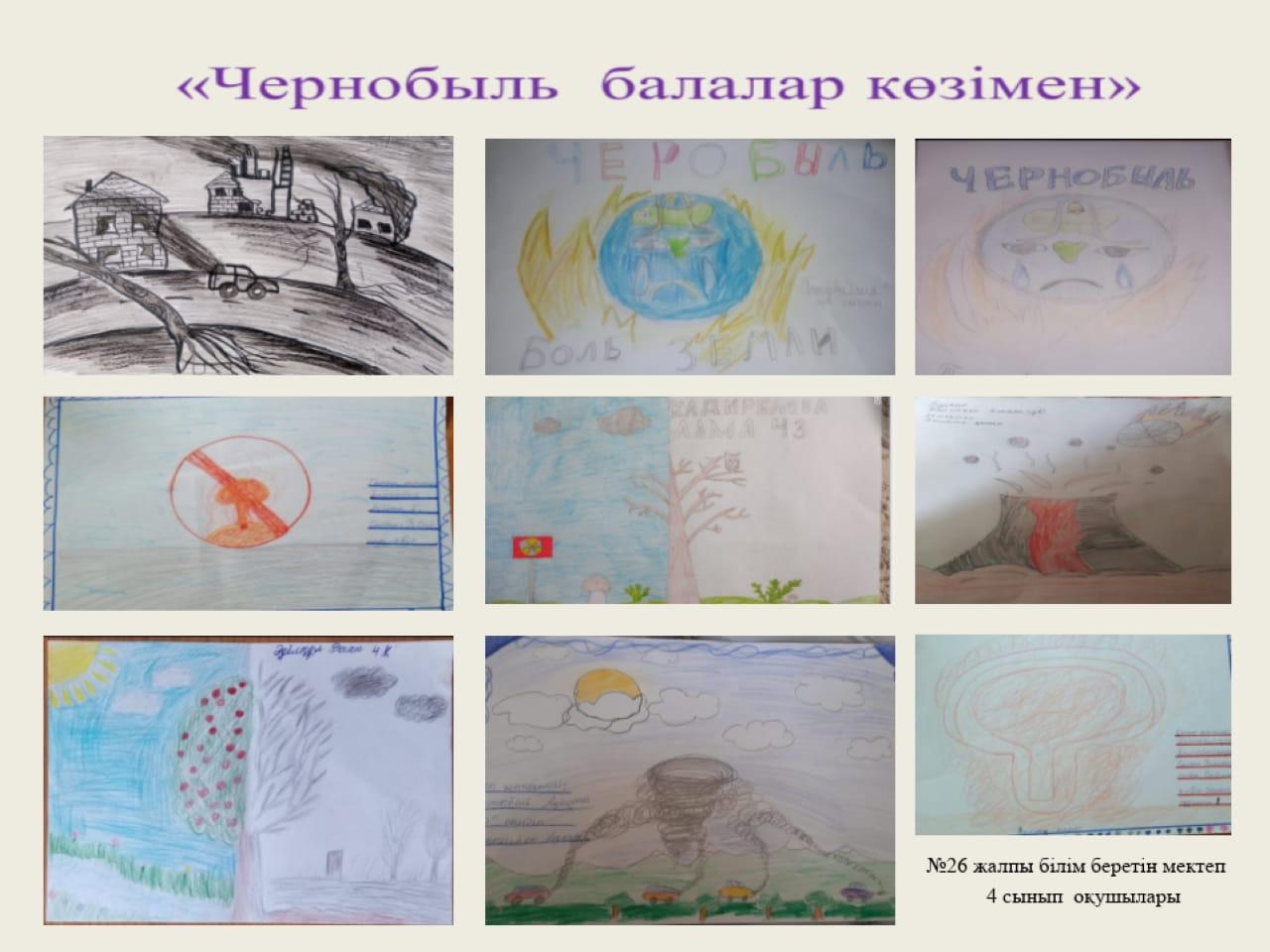 🎗️Чернобыль апатына-35 жыл толуына орай жасақталған іс-шаралар жоспарына сәйкес 3,4- сынып оқушылары арасында "Чернобыль балалардың көзімен" тақырыбында суреттер байқауы өткізілді. Оқушылардың жұмыстарын назарларыңызға ұсынамыз!