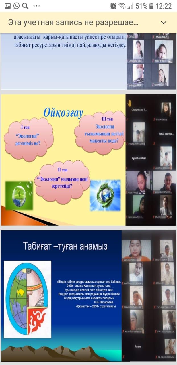 "Табиғат туралы не білеміз?" Кітаптардың виртуалды көрмесі."Жер- біздің ортақ үйіміз" тақырыбында бейнеролик 1,11-сыныптар арасында өткізілді.