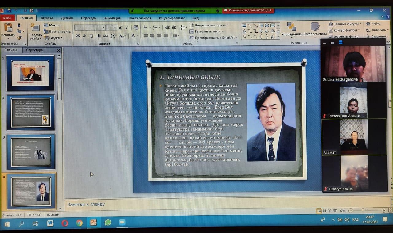 "Олжас Сүлейменов 85 жаста" тақырыбында ашық тәрбие сағаты