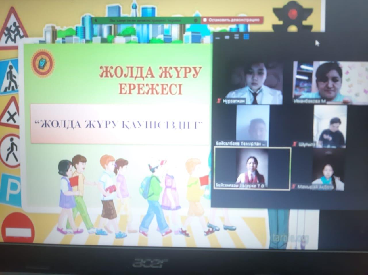 Алматы қаласы Алатау ауданы №26 жалпы білім беретін мектепте жолда жүру ережесін білу, өз өмірлерін және басқалардың өмірлерін сақтау үшін маңызды екенін қатаң есте сақтау керектігін ұғындыру мақсатында «Жаяу жүргіншілердің есіне» тақырыбында (zoom) платформасы арқылы «ҚОЗҒАЛЫСТЫҢ ЖАС ИНСПЕКТОРЫ» жасағының қатысуымен 5- сынып оқушылары арасында үгіт-насихат жұмыстары жүргізілді.Аталмыш іс-шара барысында оқушыларға жол ережелері туралы бейнематералдар көрсетілді.