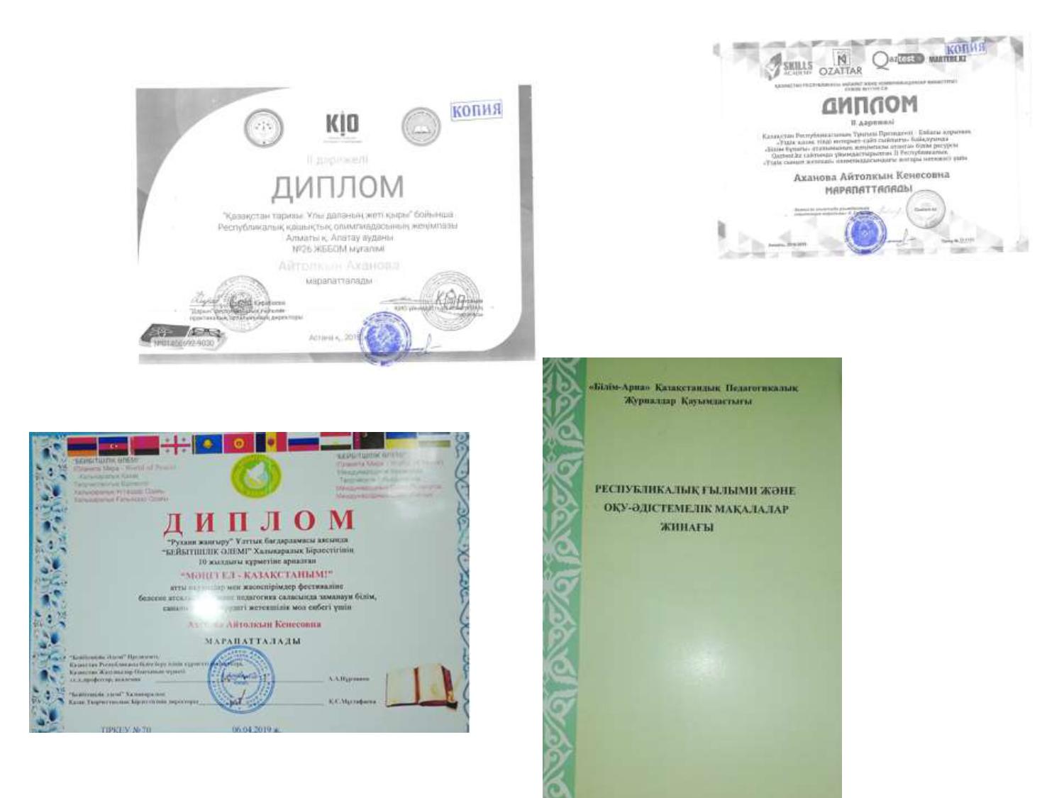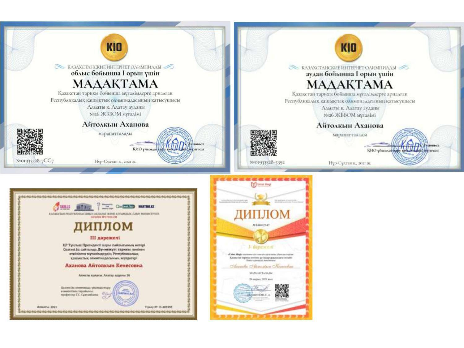 » Тарих пәні мұғалімі Аханова Айтолқынның жетістіктері