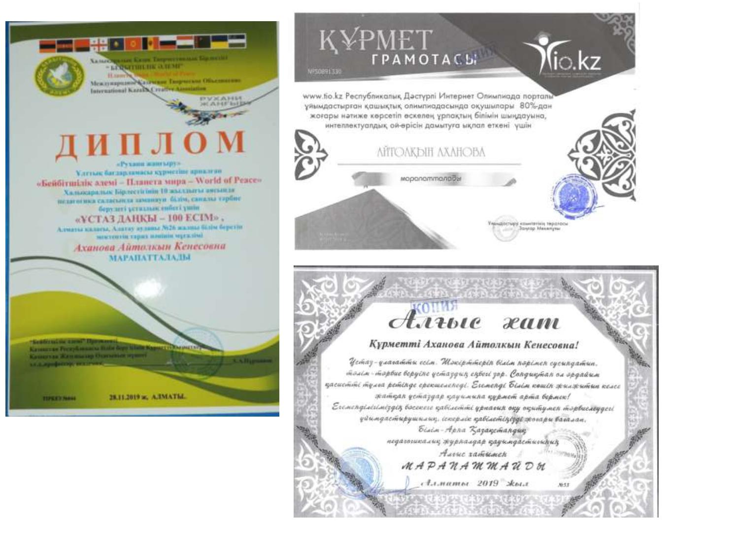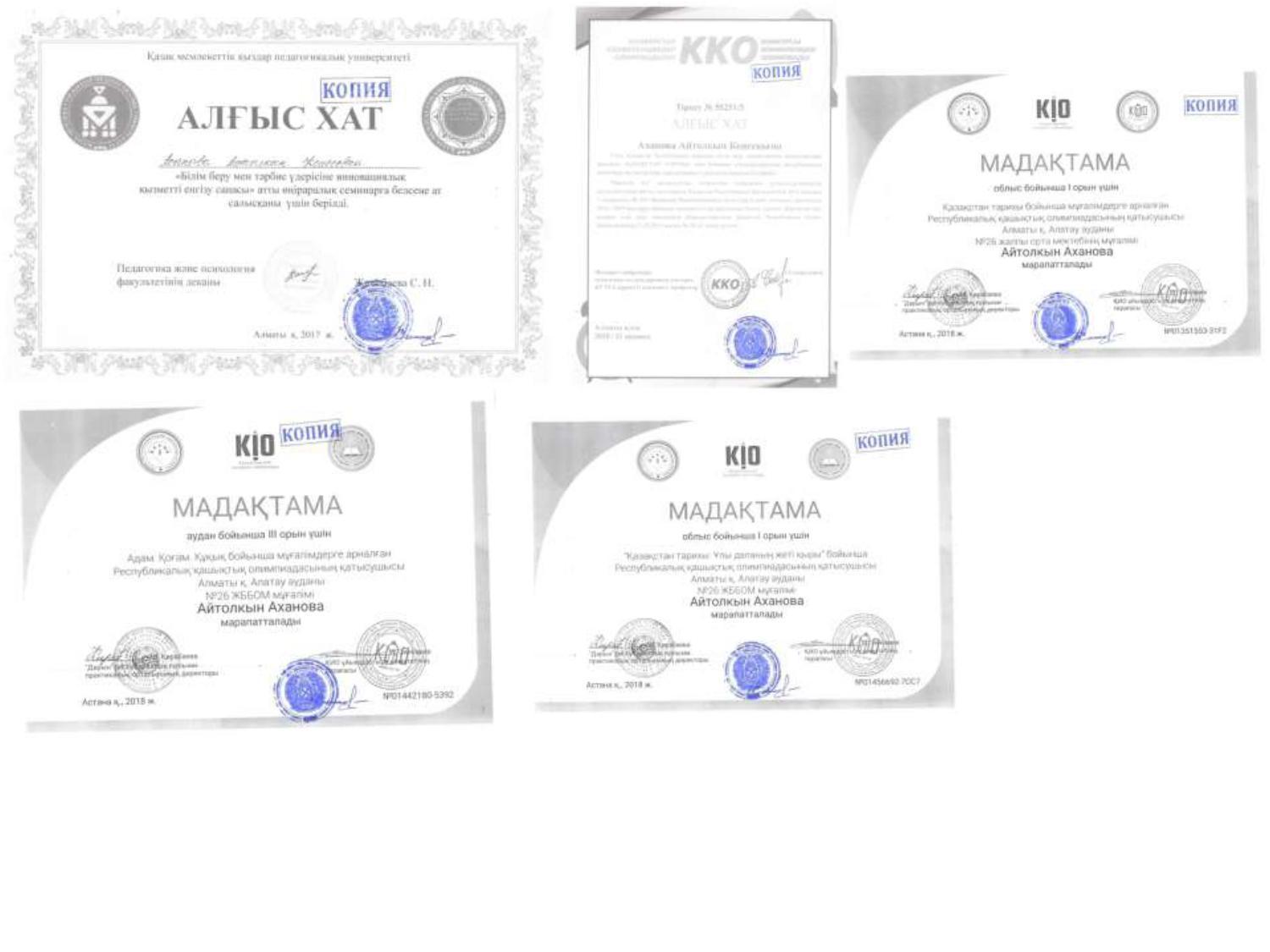 Тарих пәні мұғалімі Аханова Айтолқынның жетістіктері