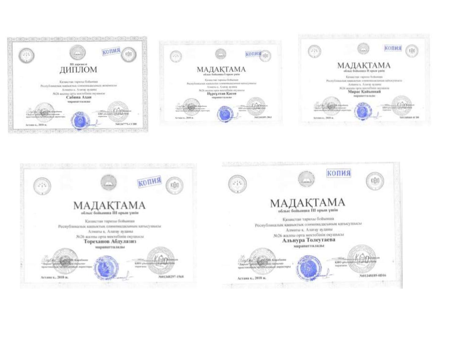 Тарих пәні мұғалімі Аханова Айтолқынның оқушыларының жетістіктері