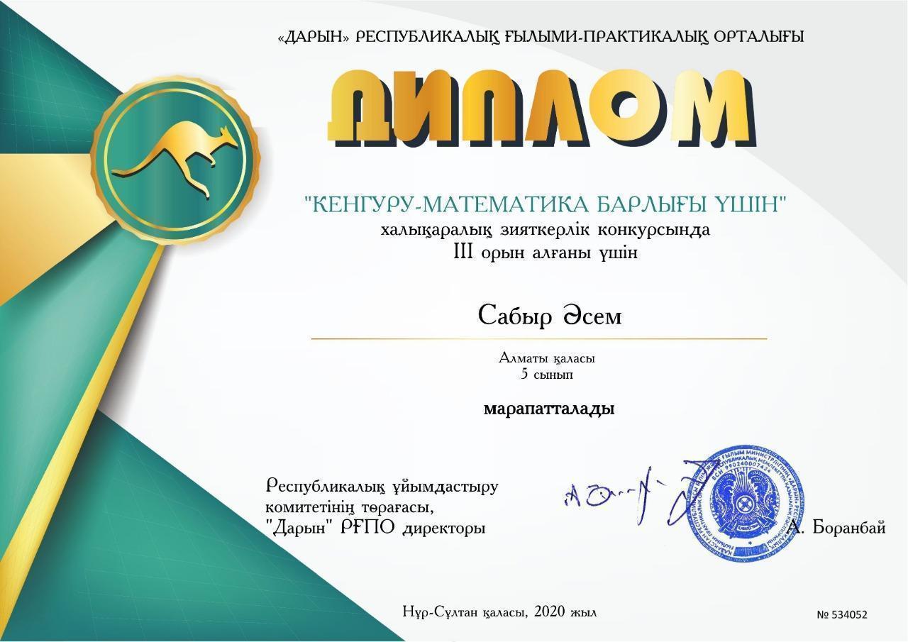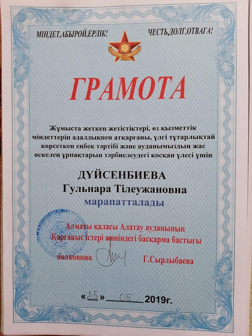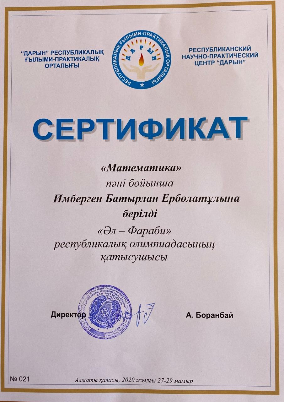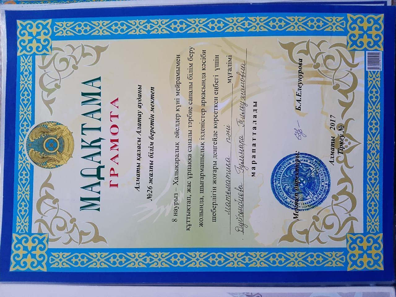» Математика пәні Дуйсенбиева Гулнардың жетістіктері