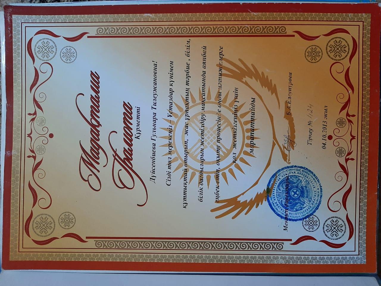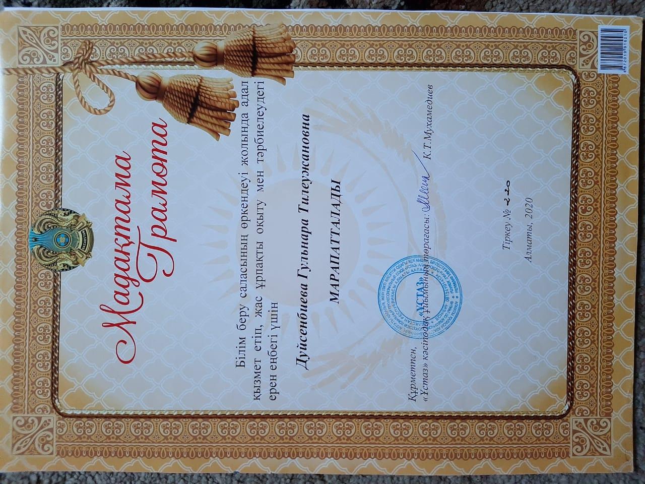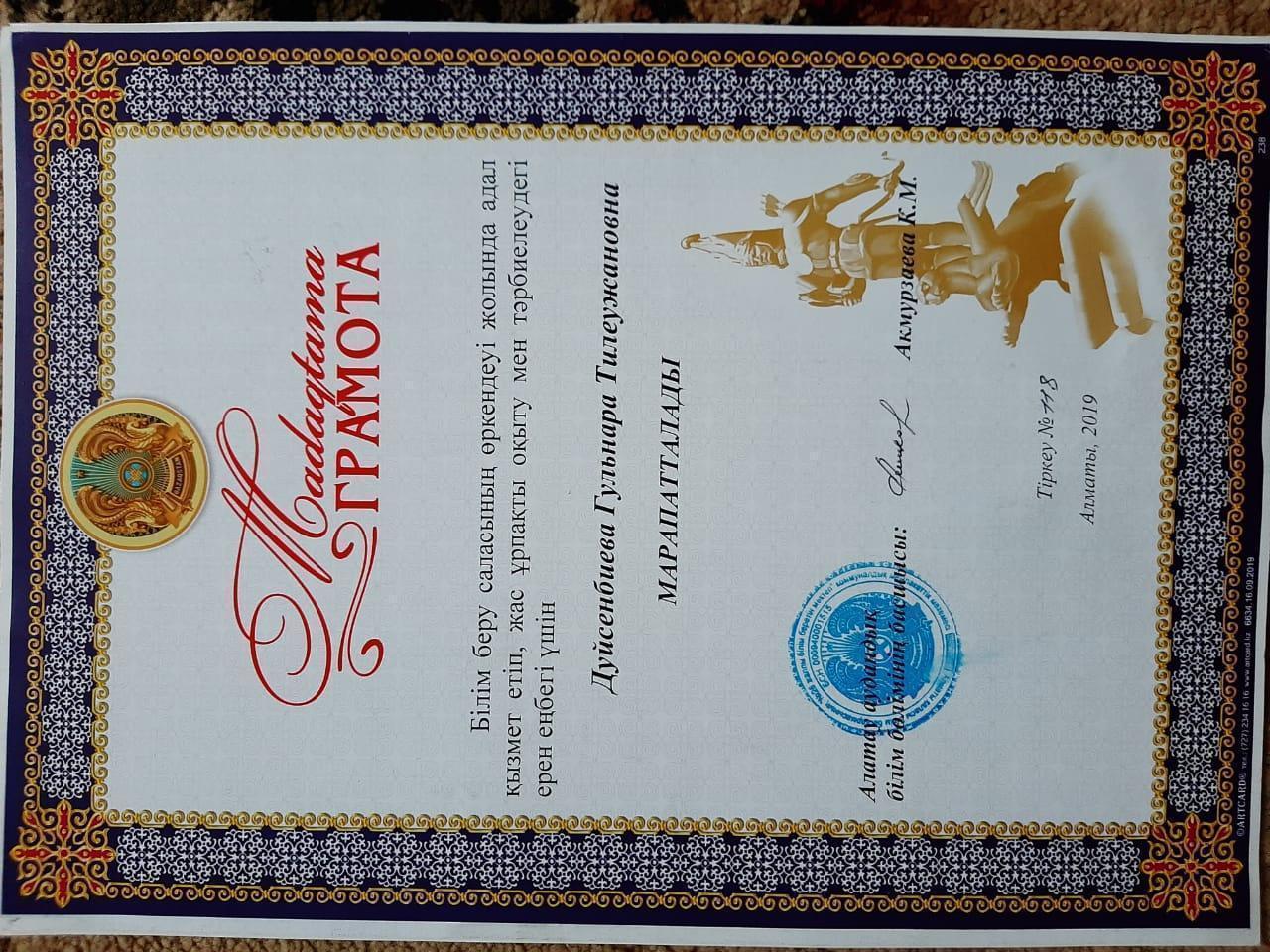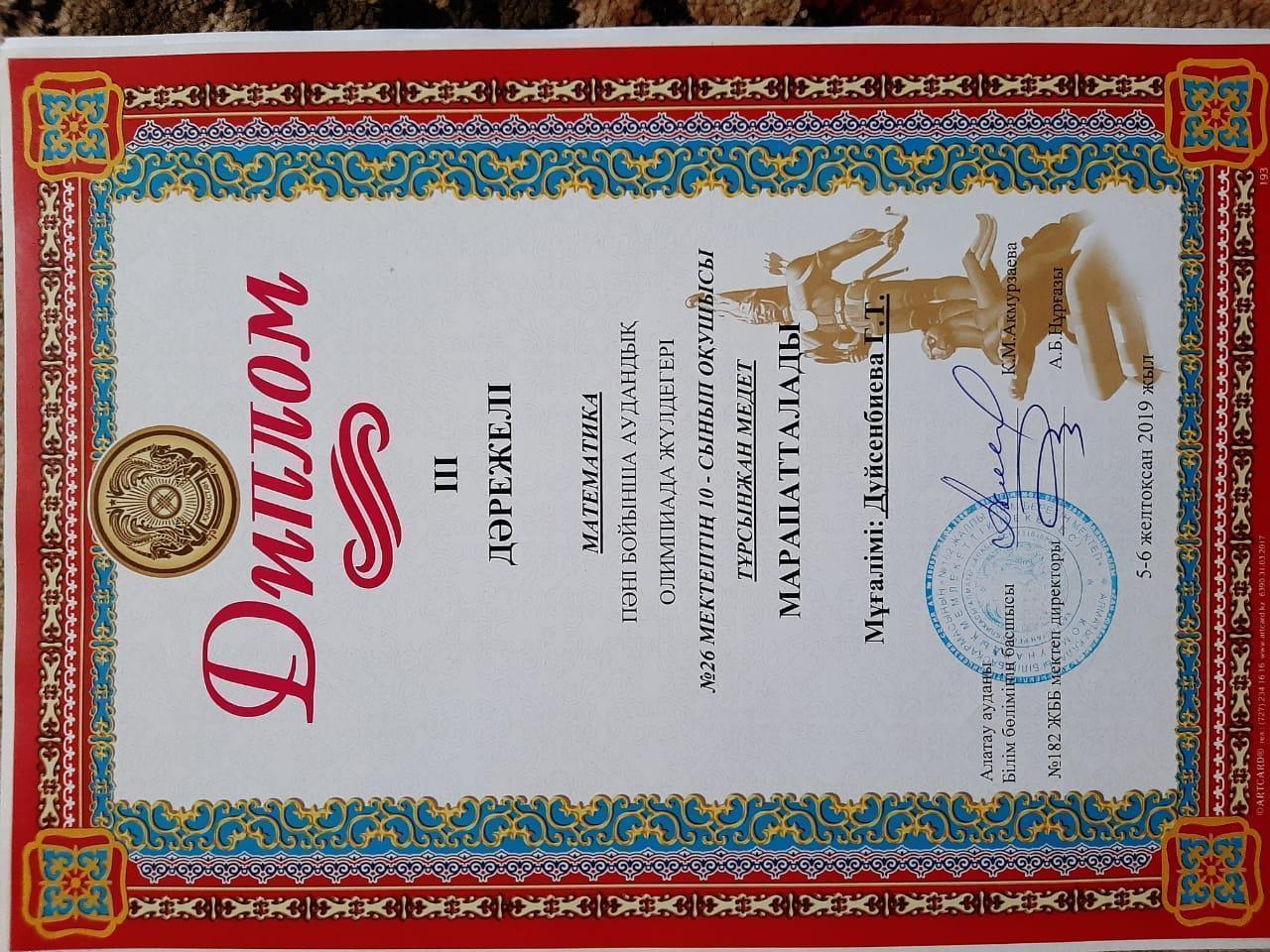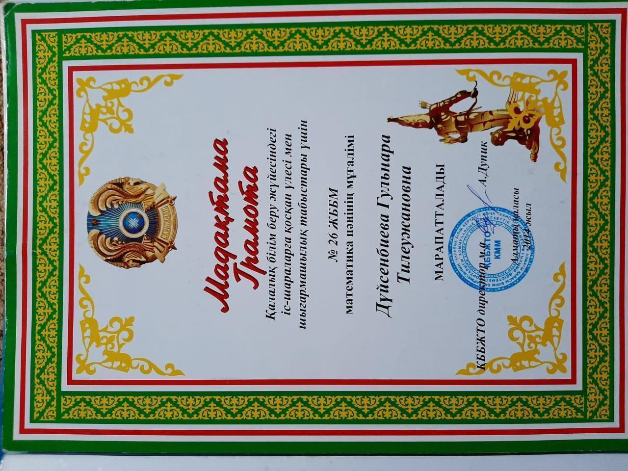 Математика пәні Дуйсенбиева Гулнардың жетістіктері