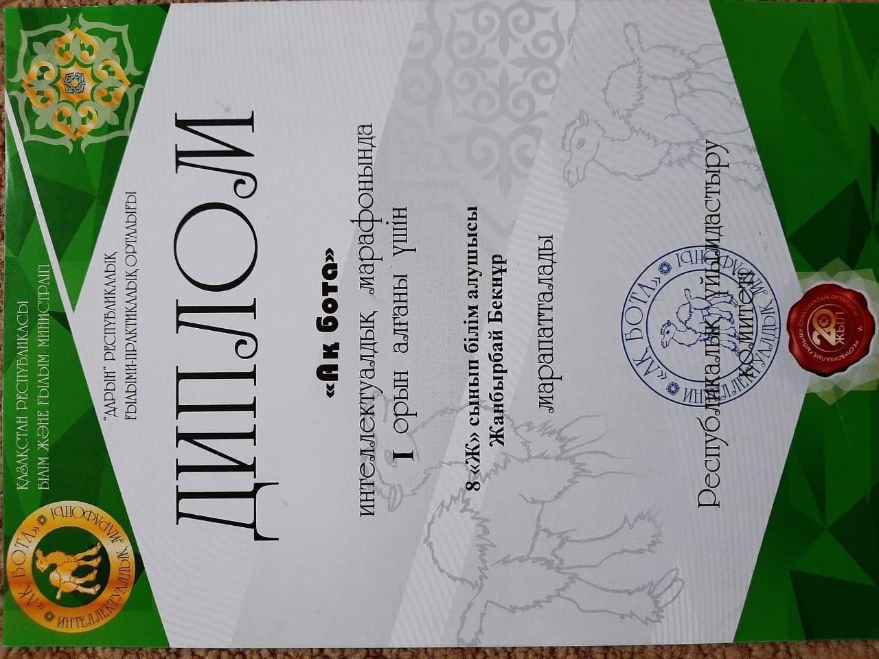 Тарих пәні мұғалімі Аханова Айтолқынның жетістіктері