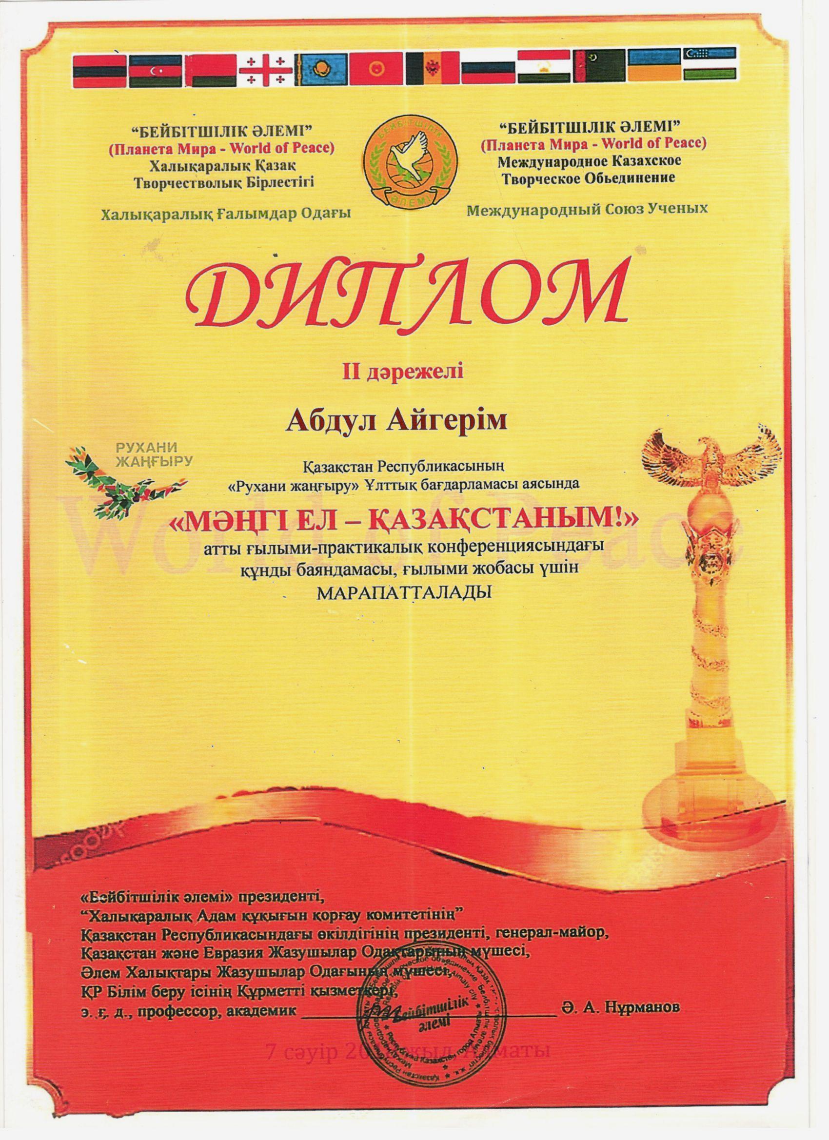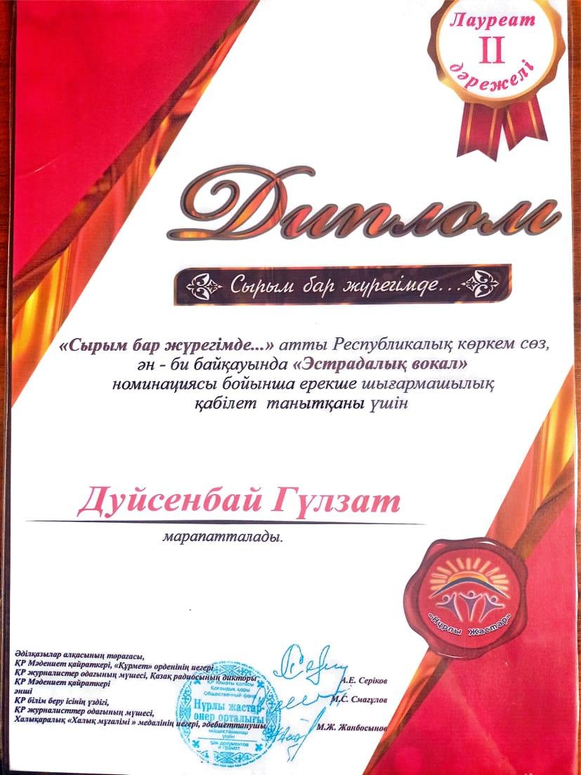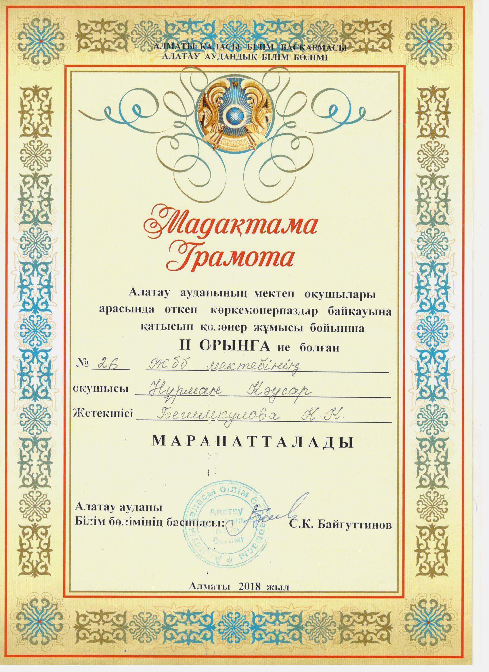 Көркем еңбек пәні мұғалімі Дуйсенбекова Айгулдің жетістіктері