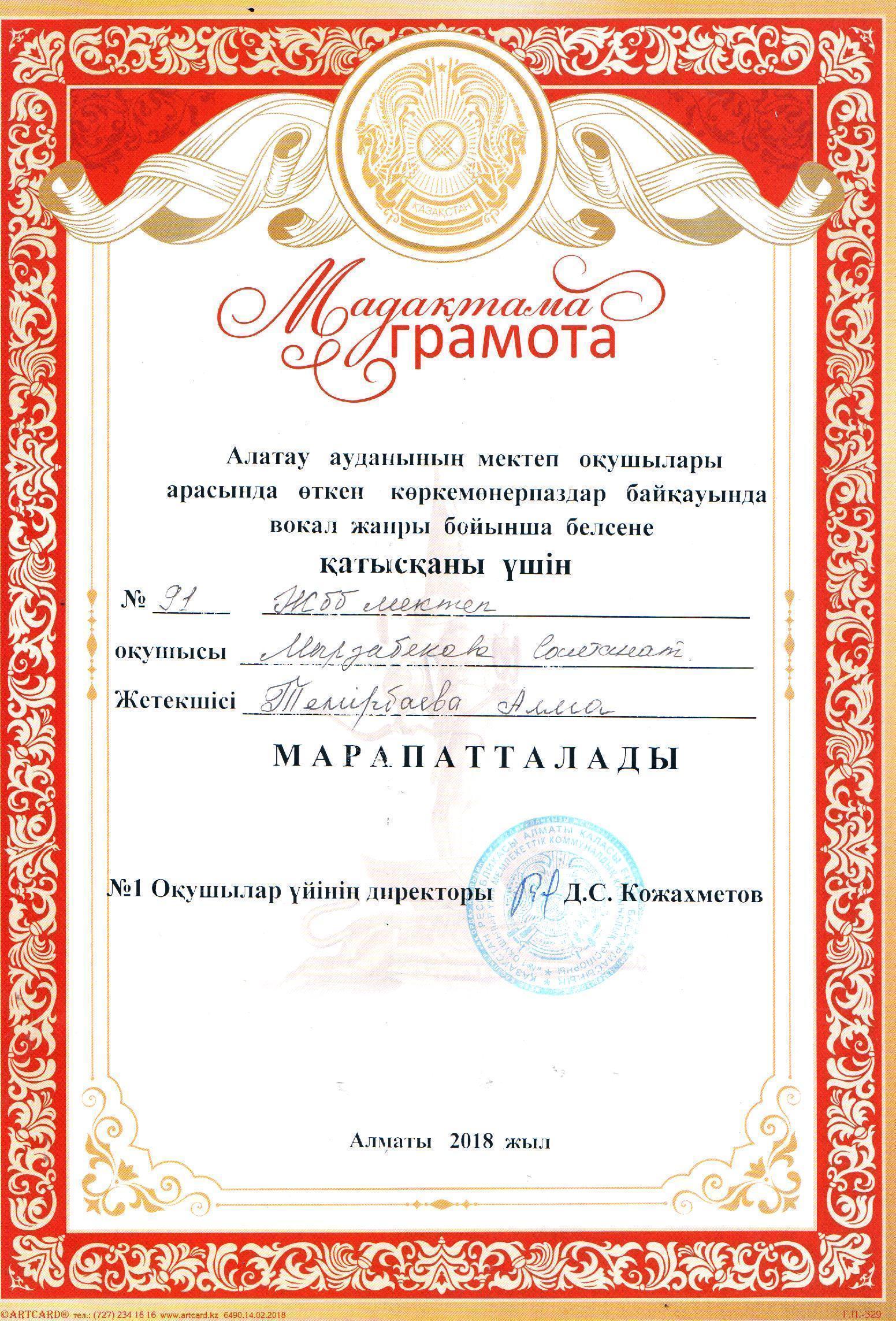 КГУ "Общеобразовательная школа №26" Управления образования города Алматы