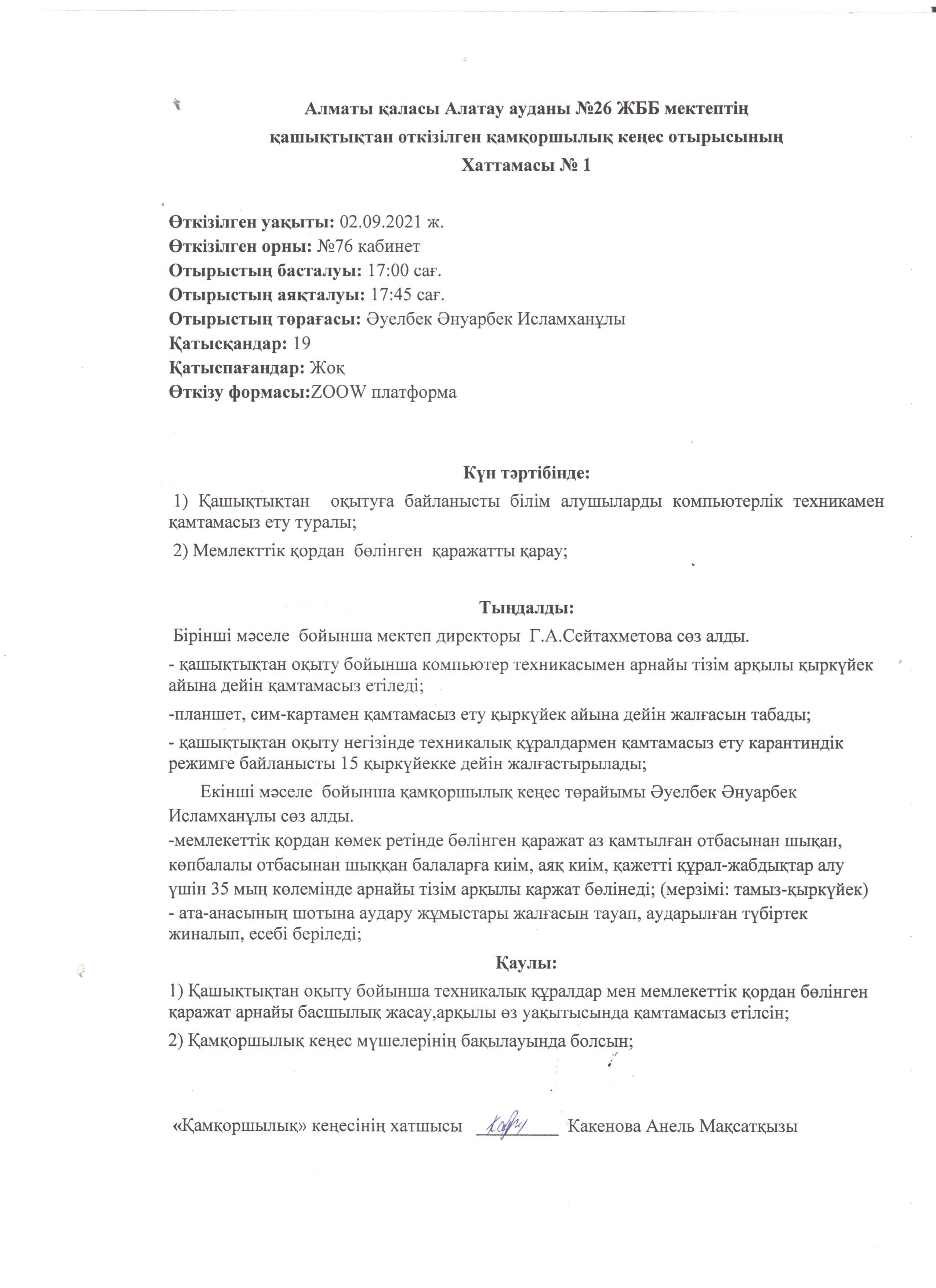 Қамқоршылық кеңесінің №1 хаттамасы