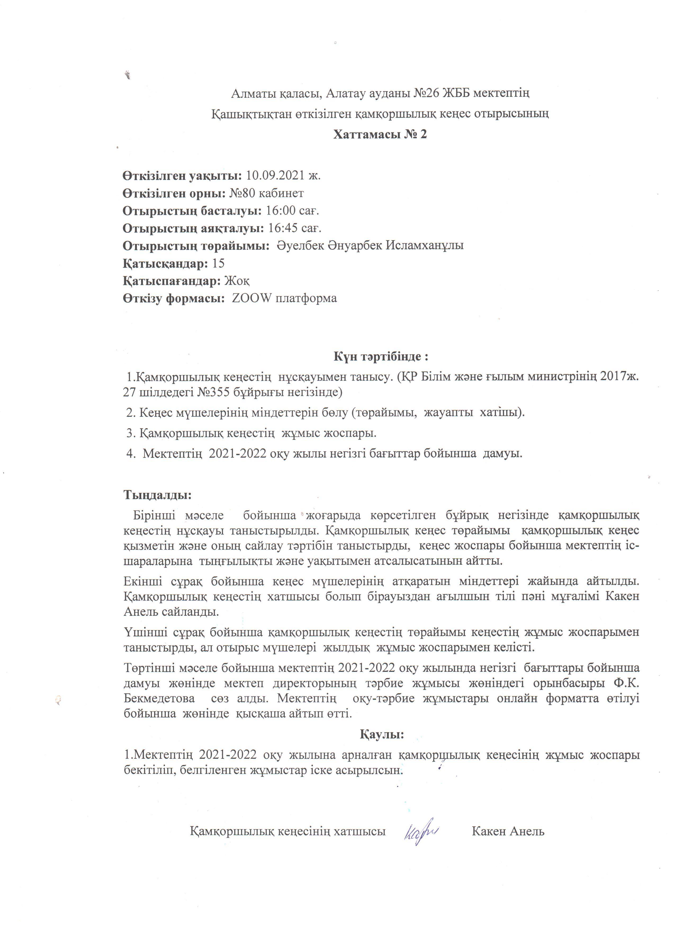 Қамқоршылық кеңесінің №2 хаттамасы