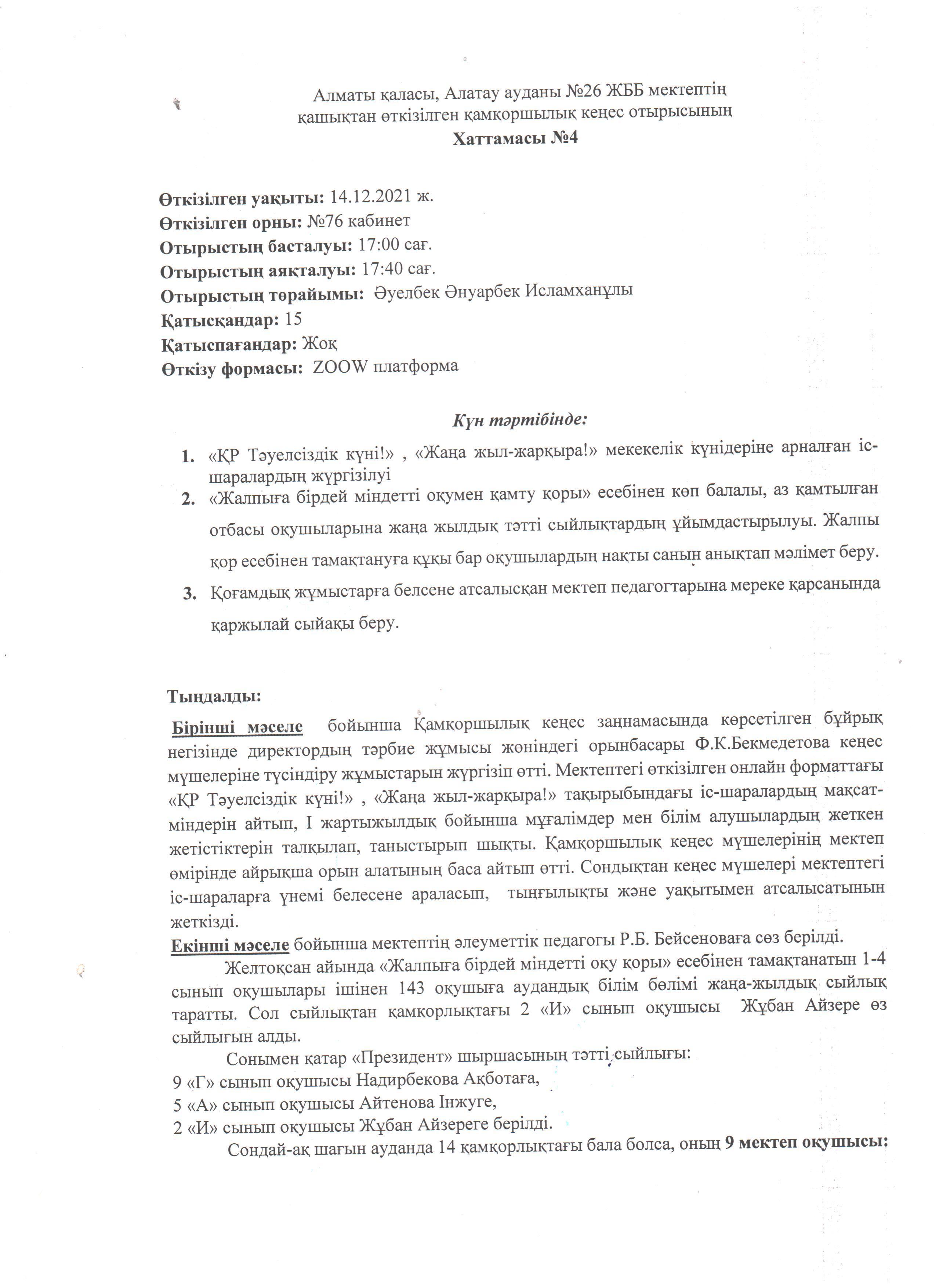 Қамқоршылық кеңес отырысының №4 хаттамасы