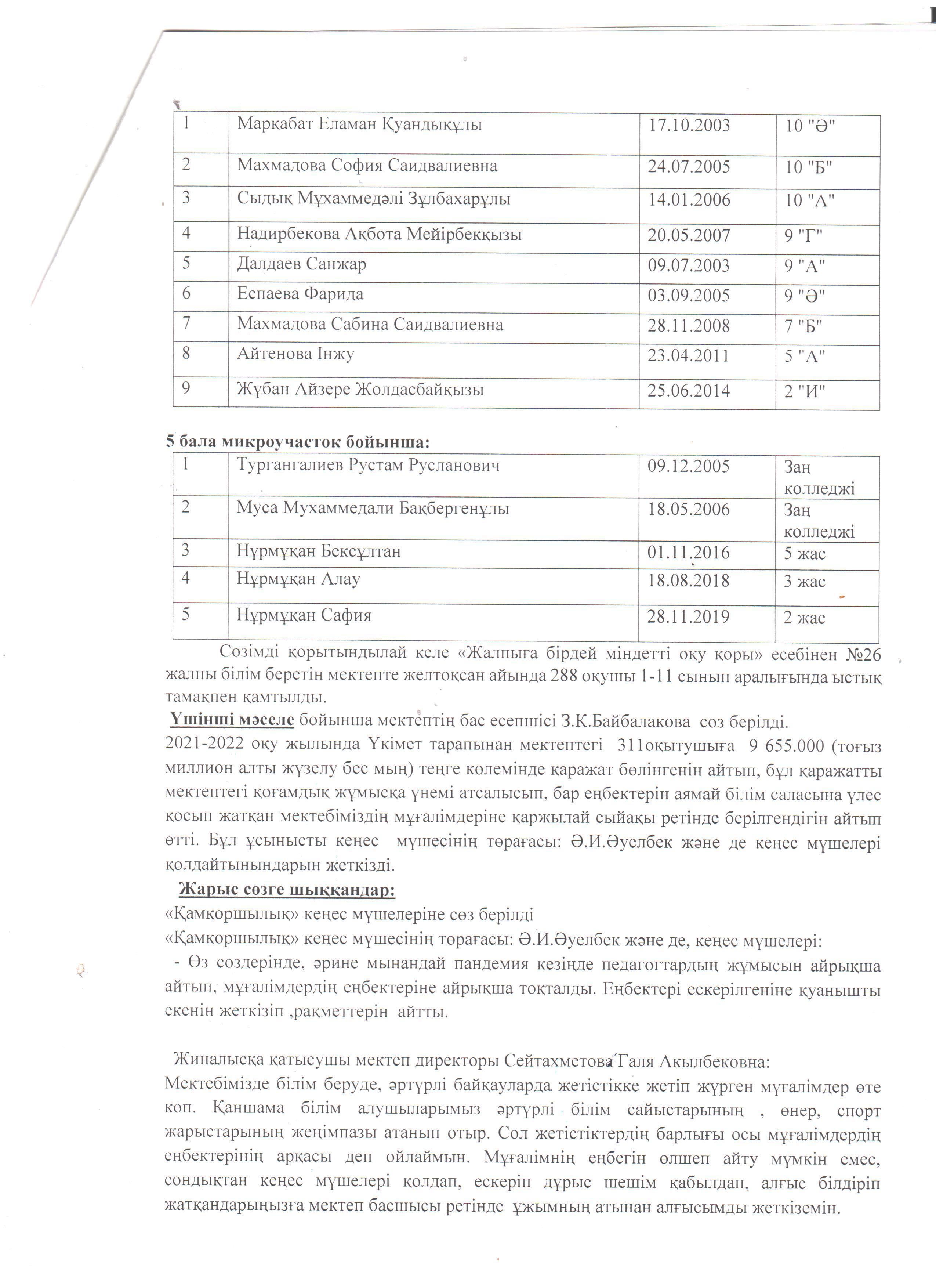 Қамқоршылық кеңес отырысының №5 хаттамасы