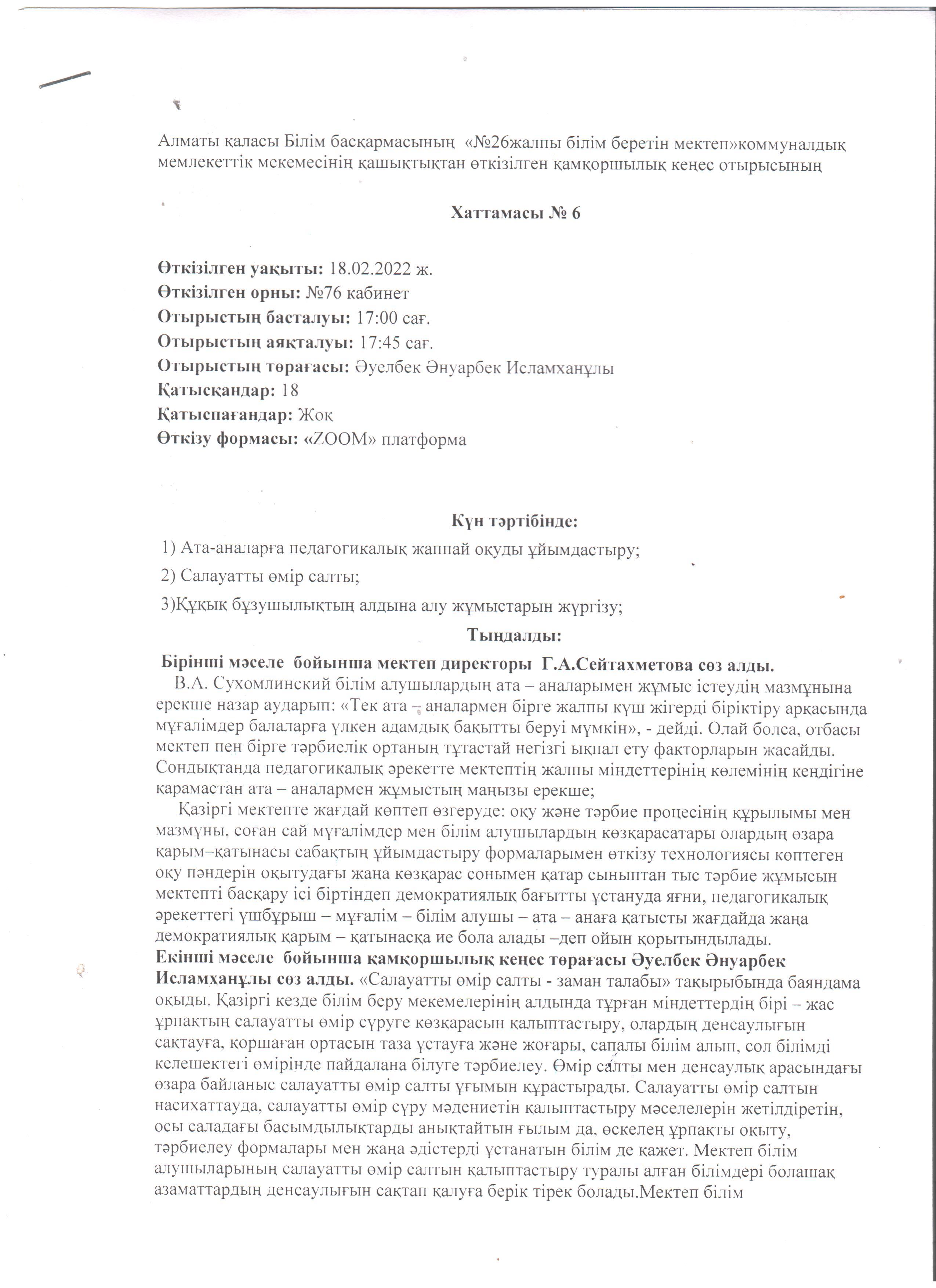 Қамқоршылық кеңес отырысының №6 хаттамасы