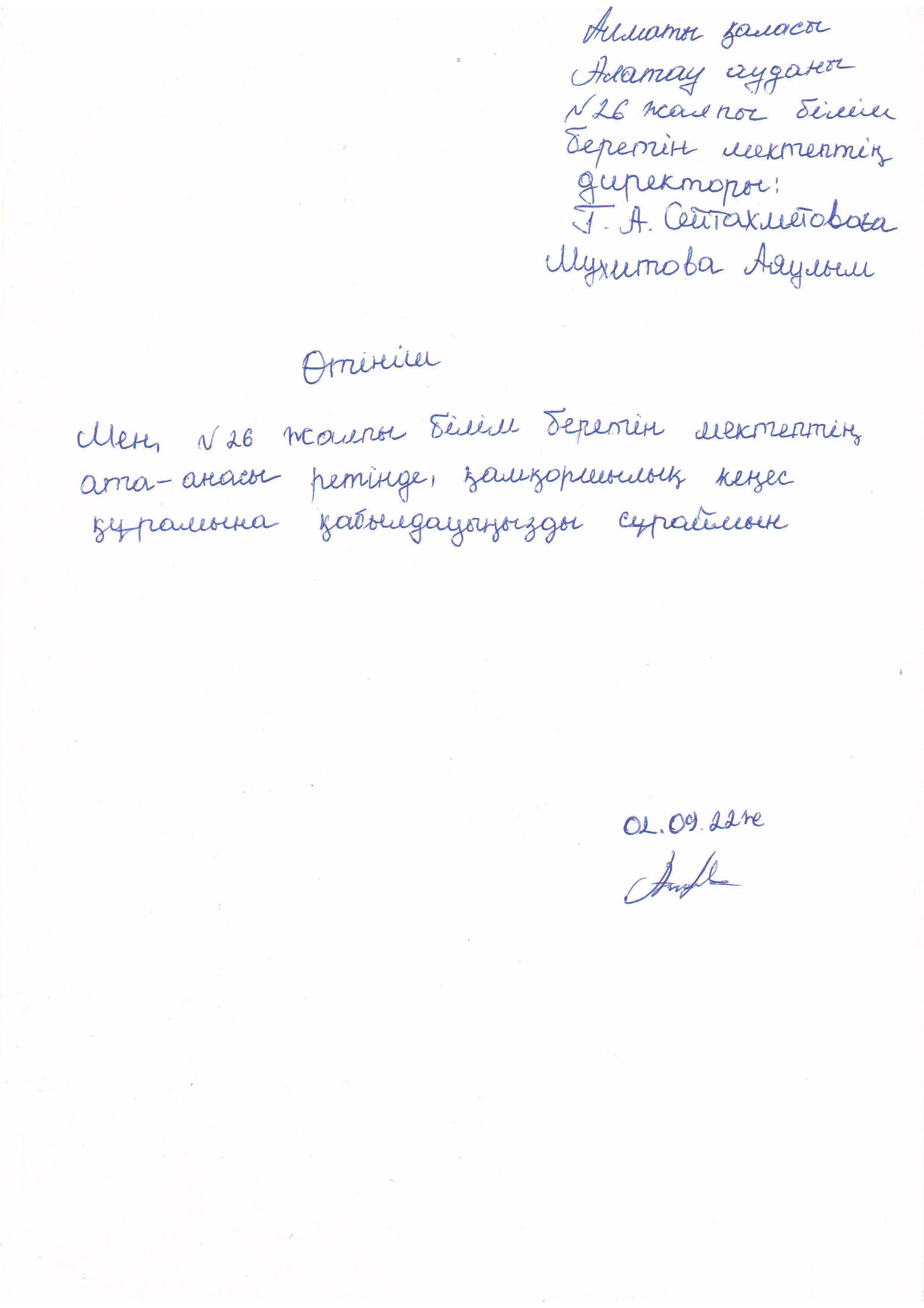 КГУ "Общеобразовательная школа №26" Управления образования города Алматы