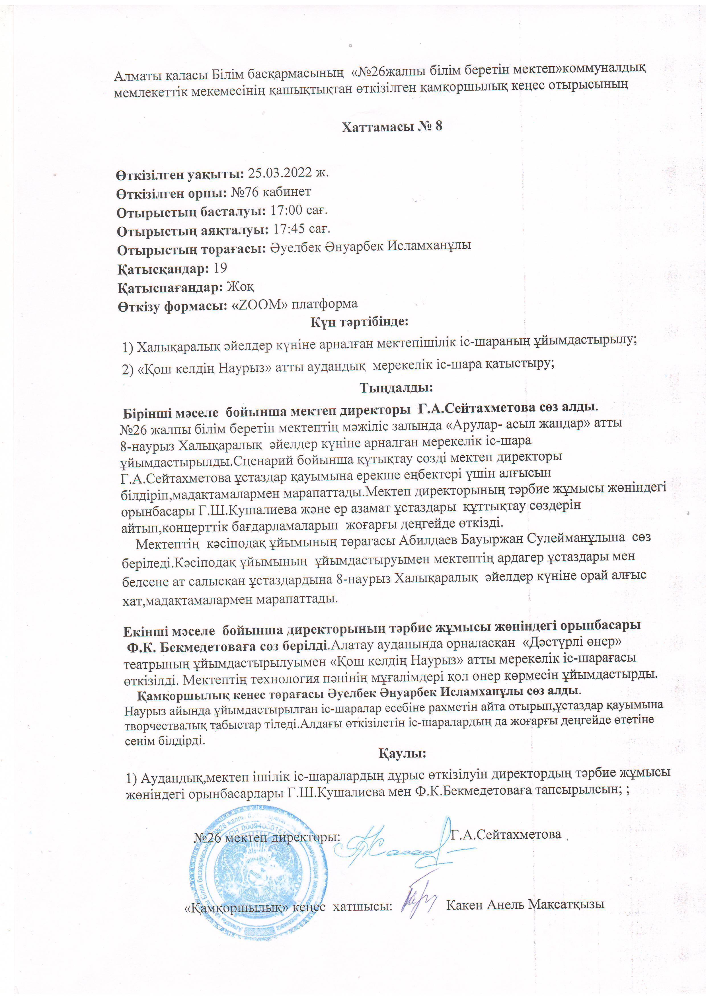 Қамқоршылық кеңес №1 хаттама