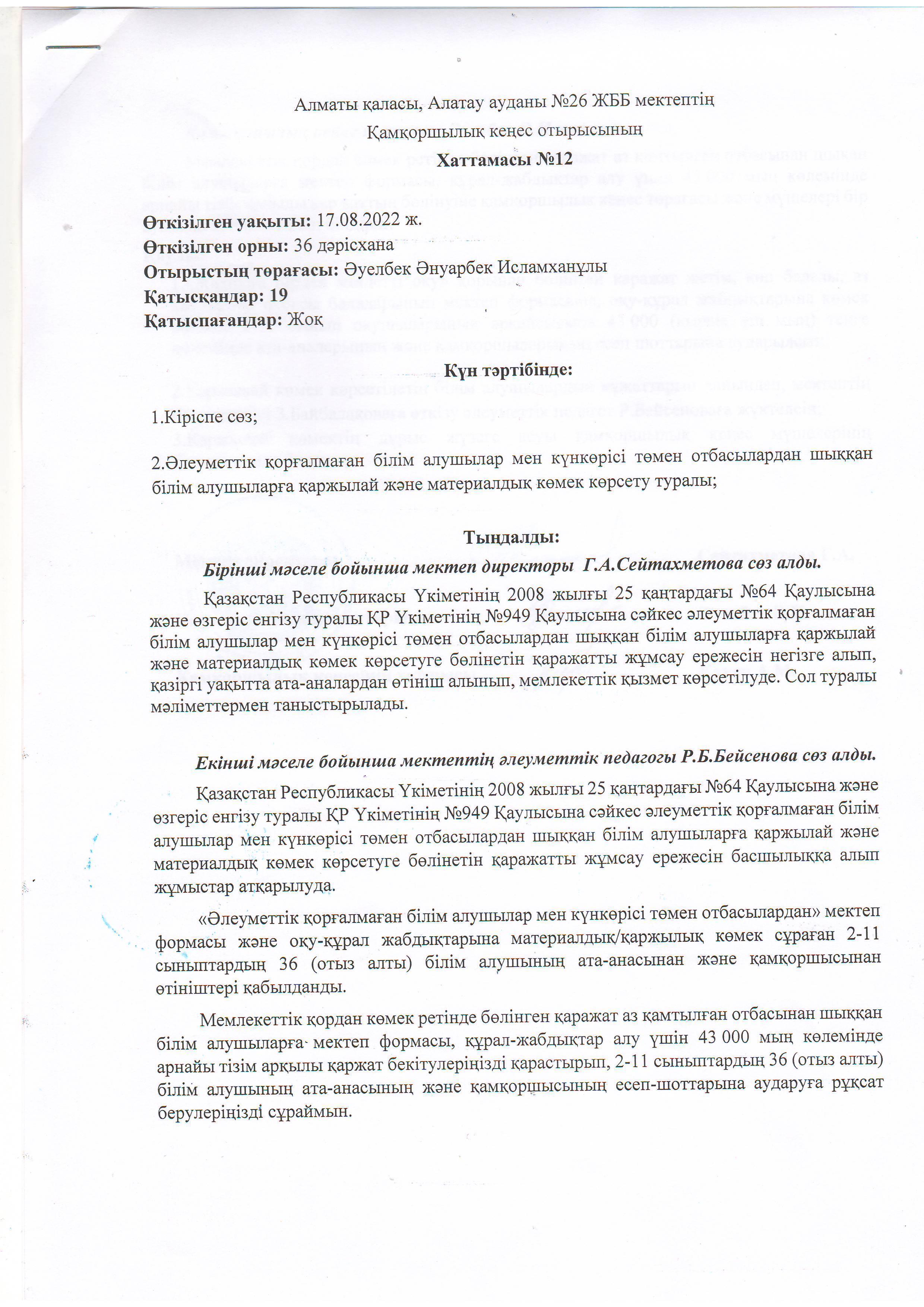 КГУ "Общеобразовательная школа №26" Управления образования города Алматы