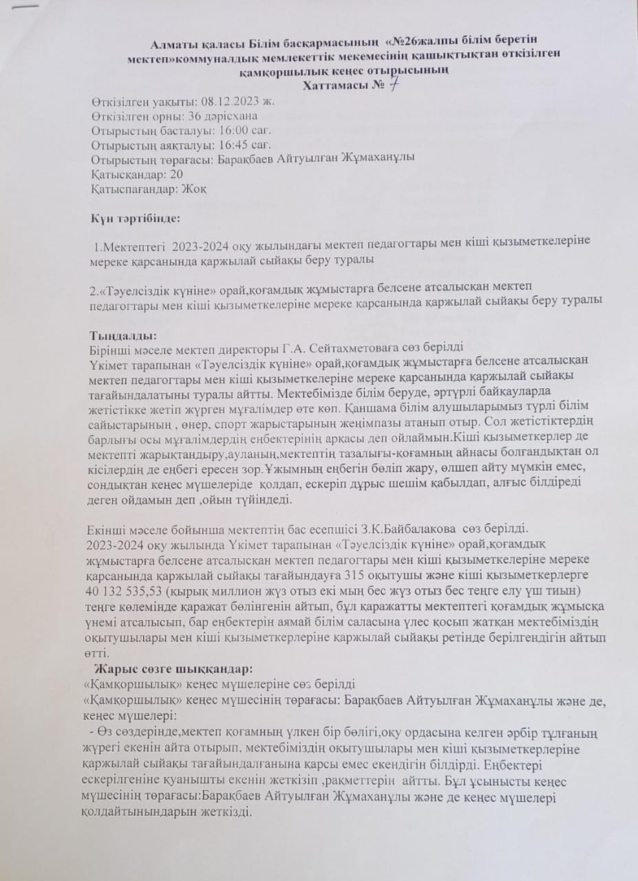 КГУ "Общеобразовательная школа №26" Управления образования города Алматы