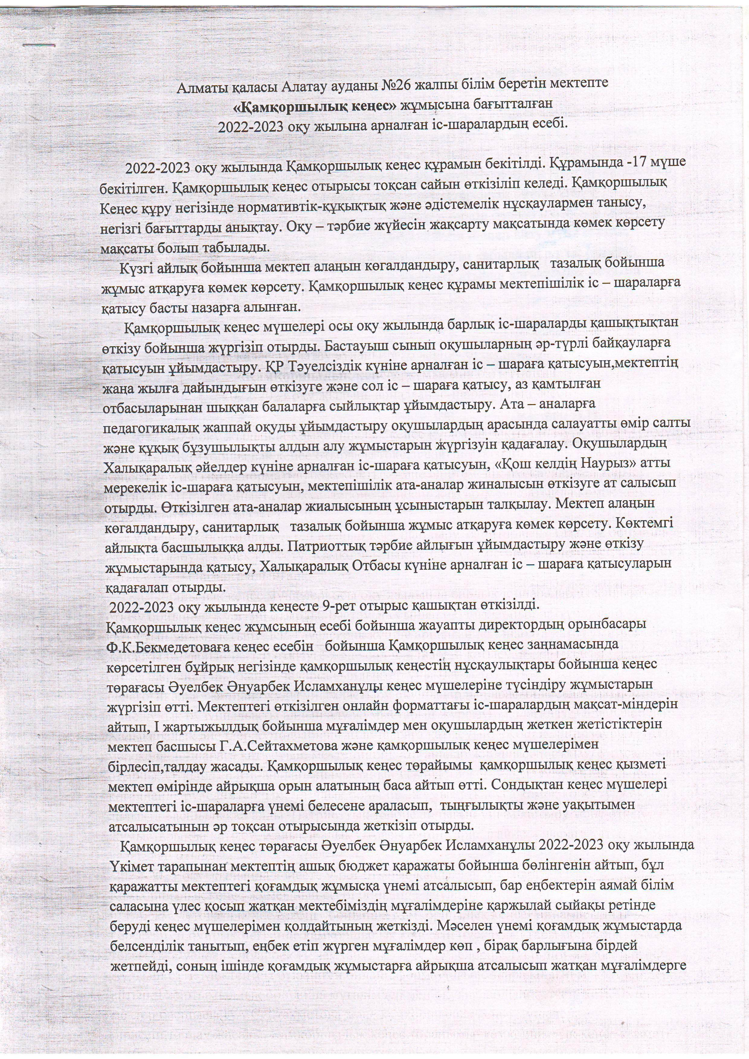 Қамқоршылық кеңестің жылдық қорытынды есебі