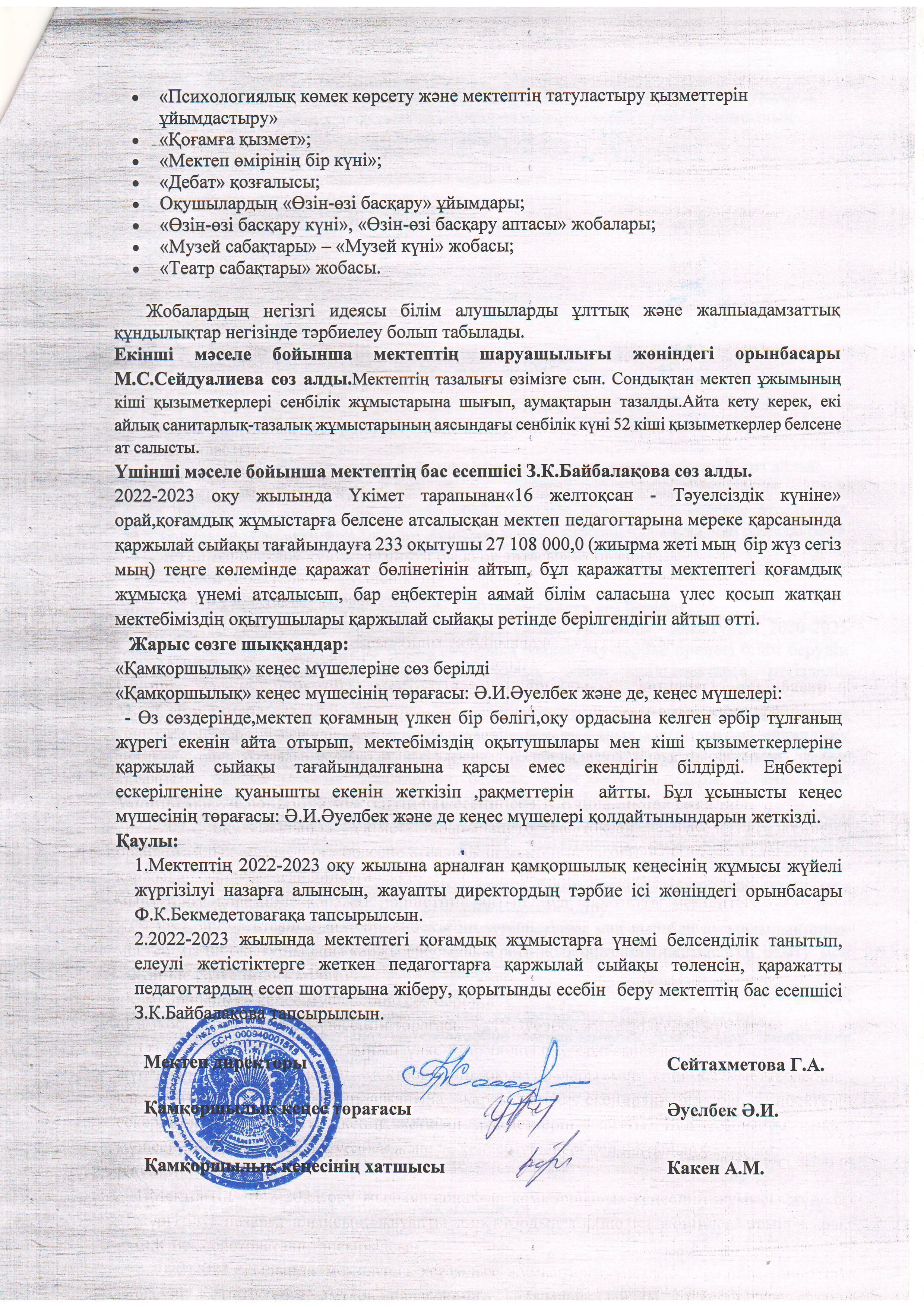 Қамқоршылық кеңес мүшелерінің құрамы 2022-2023 оқу жылы