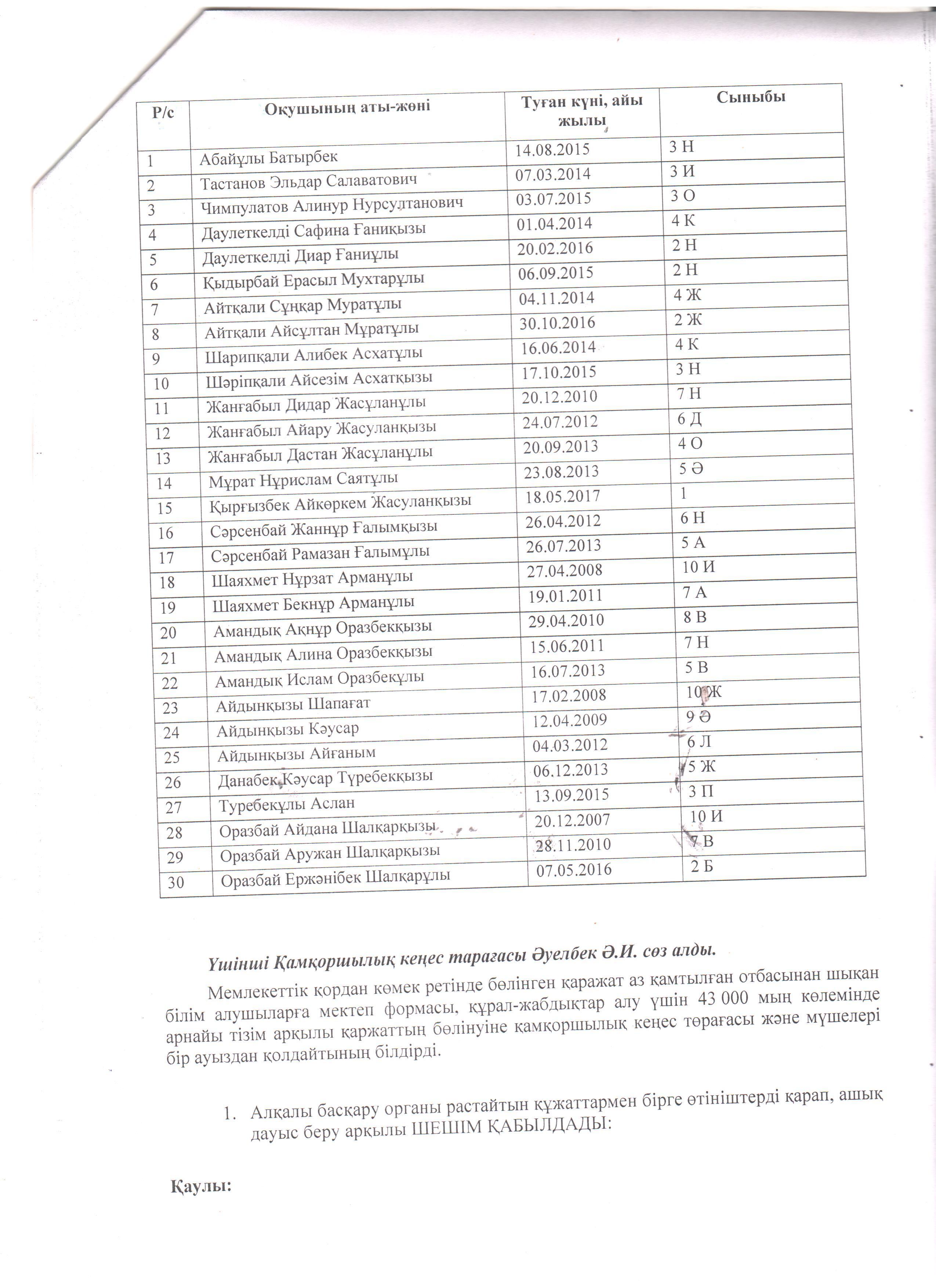 Қамқоршылық кеңес отырысының хаттамасы №17