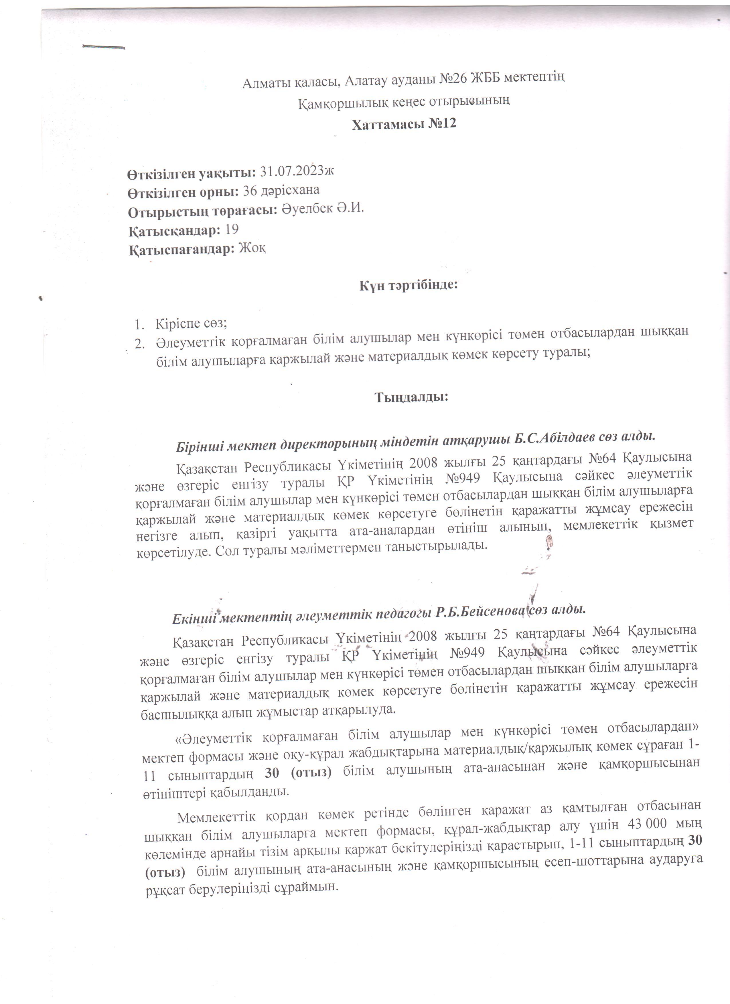 Қамқоршылық кеңес отырысының хаттамасы №12