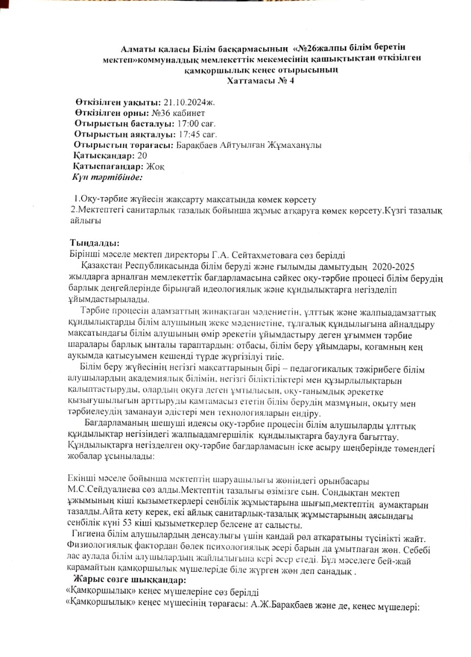 КГУ "Общеобразовательная школа №26" Управления образования города Алматы