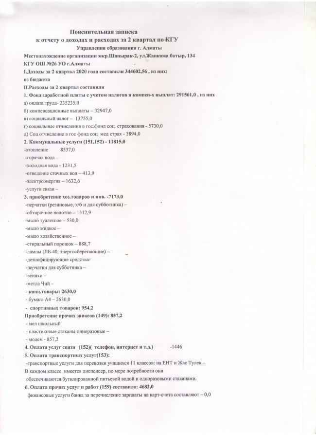 » ОТЧЕТ О ДОХОДАХ И РАСХОДАХ за 2 квартал 2020год