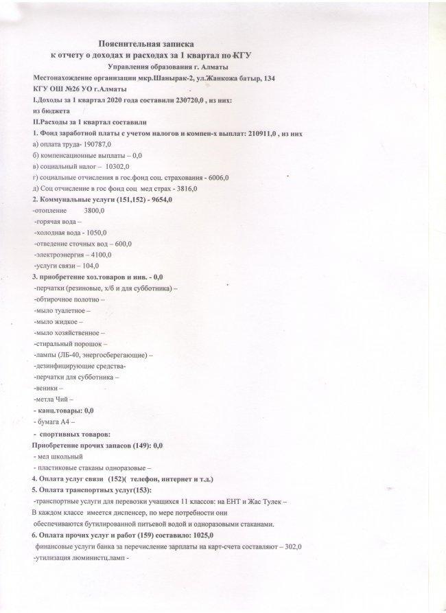 » ОТЧЕТ О ДОХОДАХ И РАСХОДАХ за 1 квартал 2020год
