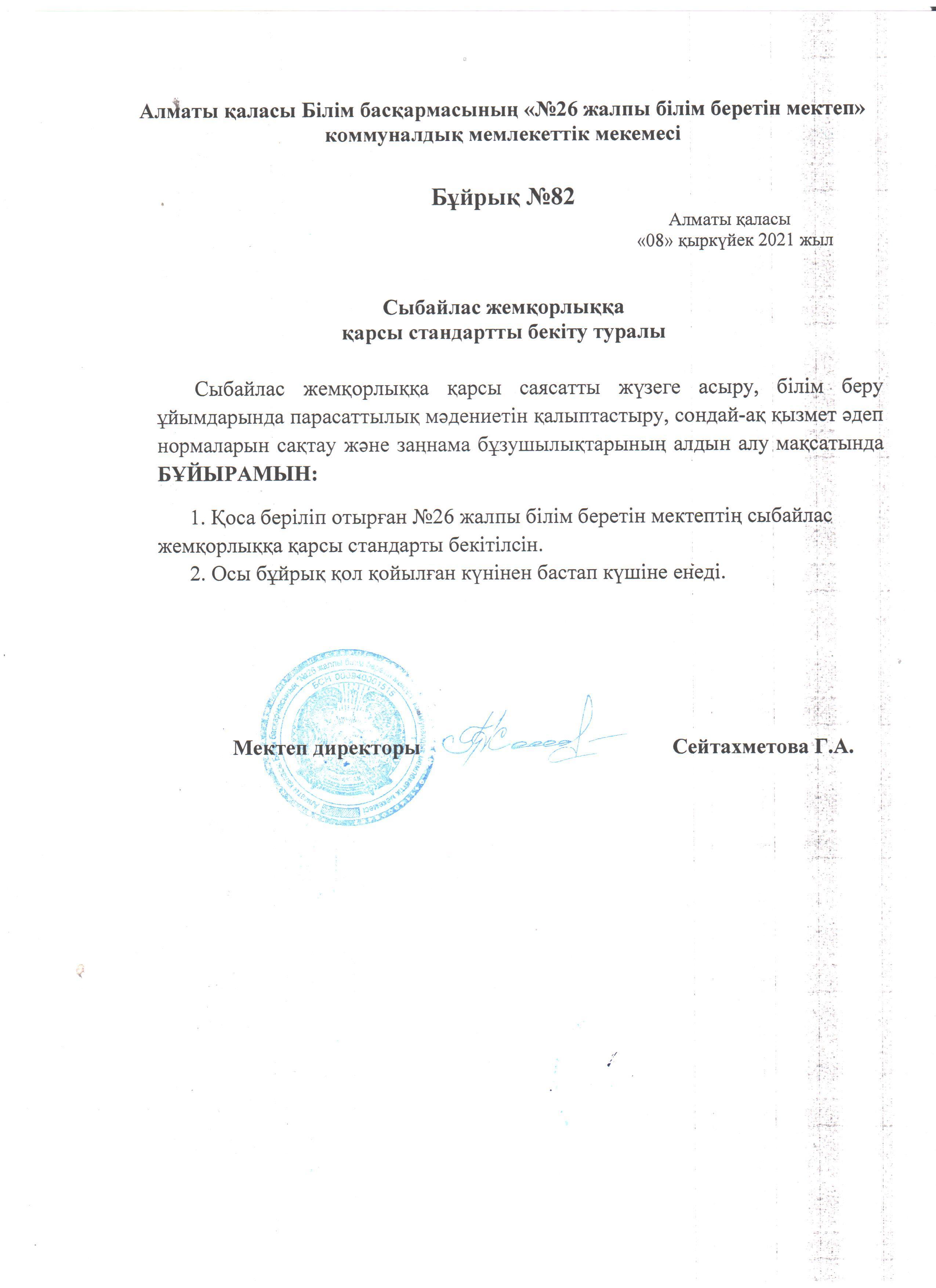 "Сыбайлас жемқорлыққа қарсы күрес" бойынша атқарылатын 2021-2022 оқу жылына арналған іс-шаралар жоспары