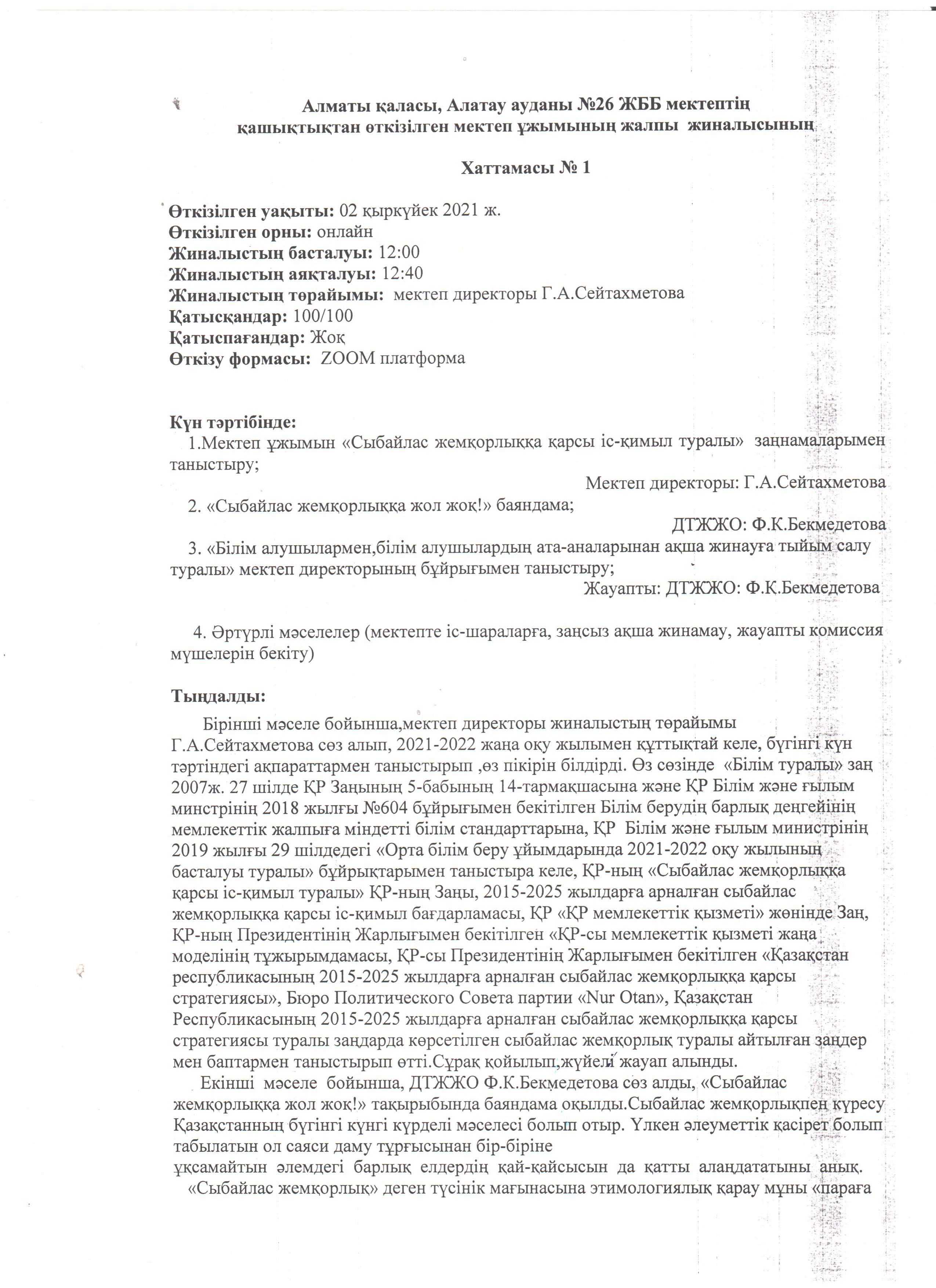 КГУ "Общеобразовательная школа №26" Управления образования города Алматы