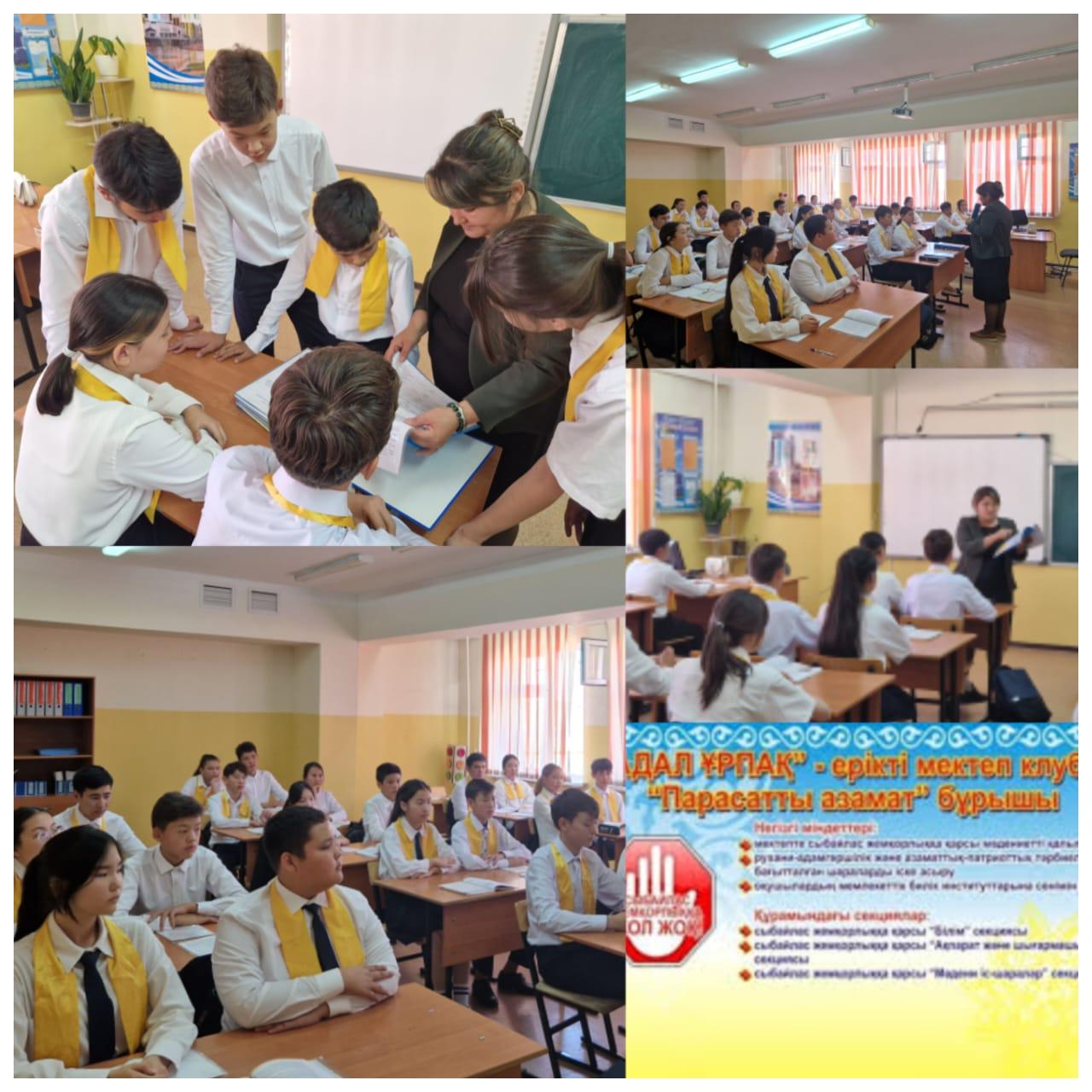 Осындай міндеттерді негізге ала отырып, «Адал Ұрпақ» ерікті мектеп клубының жылдық жоспары бекітілді. Үнемі жаңартылып отыратын «Парасатты азамат» бұрышы жұмыс жасайды.