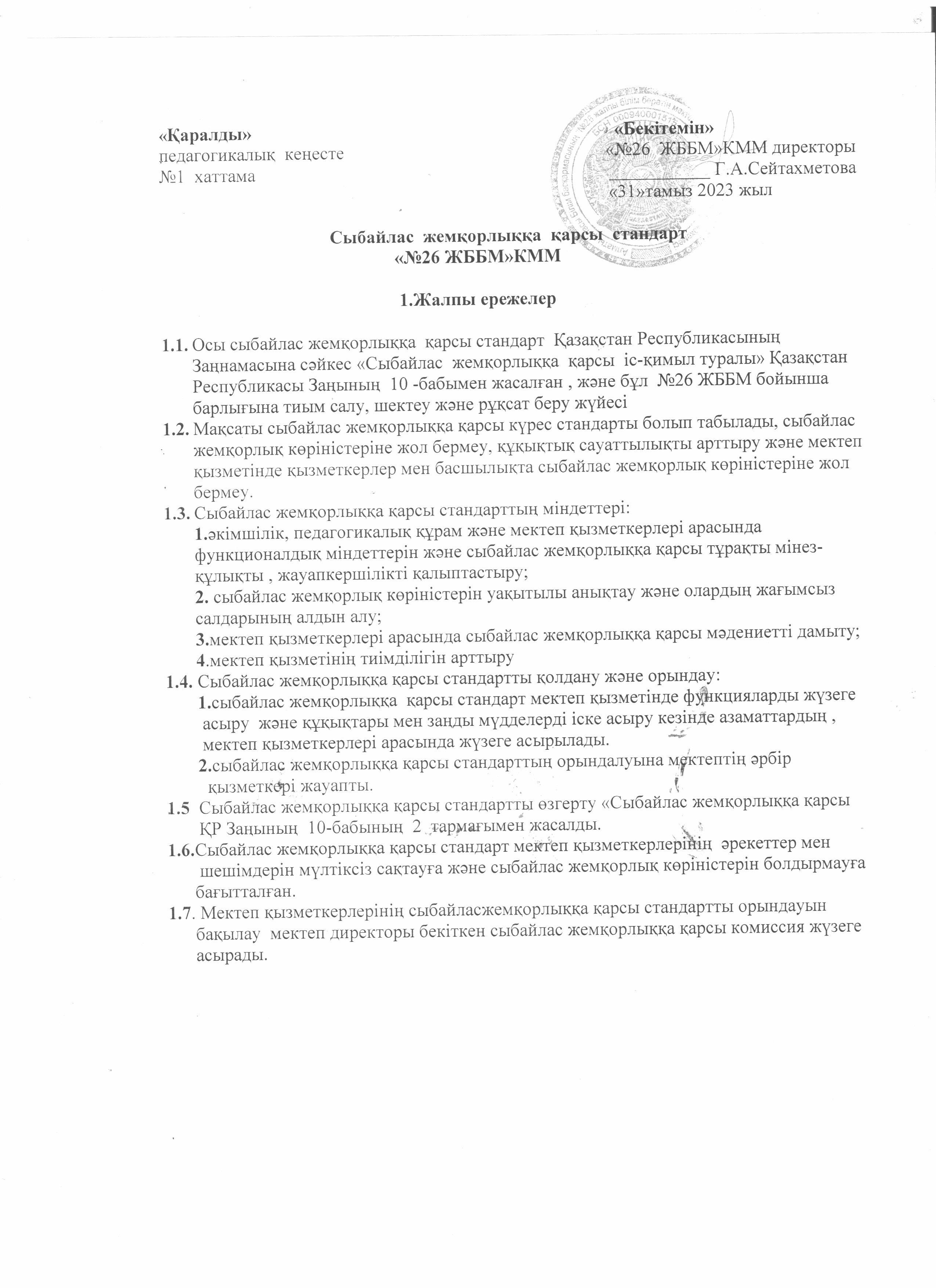 Сыбайлас жемқорлыққа қарсы күрес бойынша атқарылатын 2023-2024 оқу жылына арналған іс-шаралар жоспары