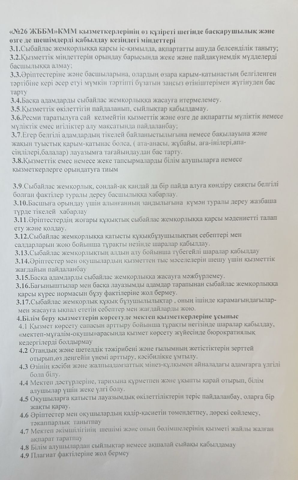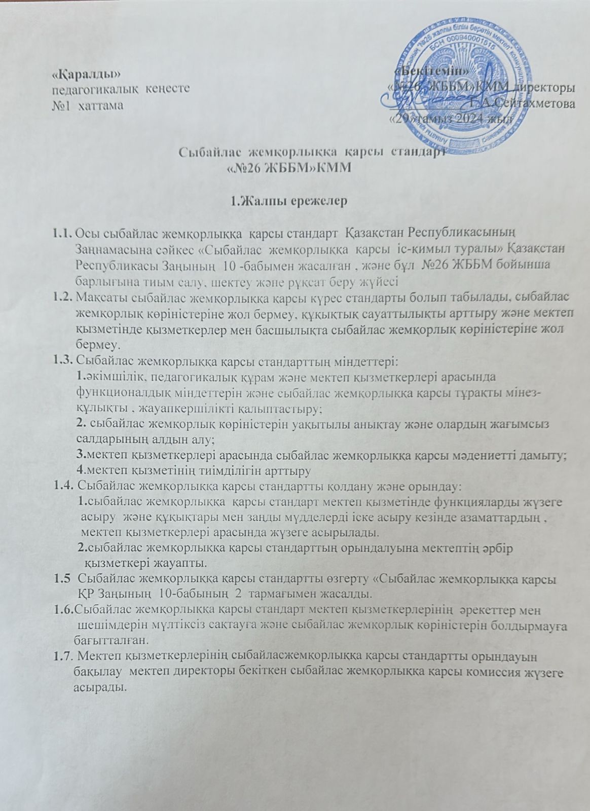 Сыбайлас жемқорлыққа қарсы күрес бойынша атқарылатын 2023-2024 оқу жылына арналған іс-шаралар жоспары