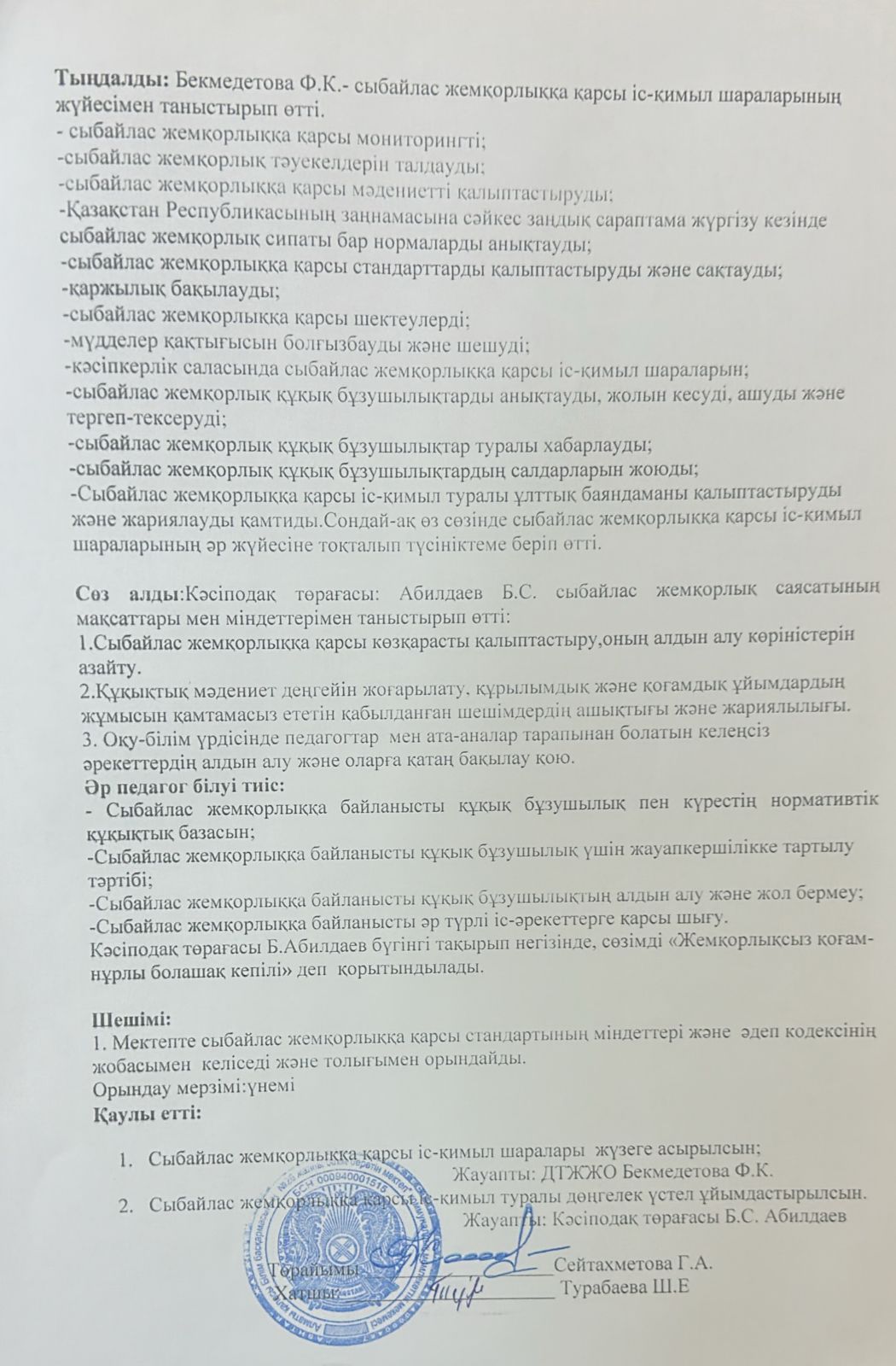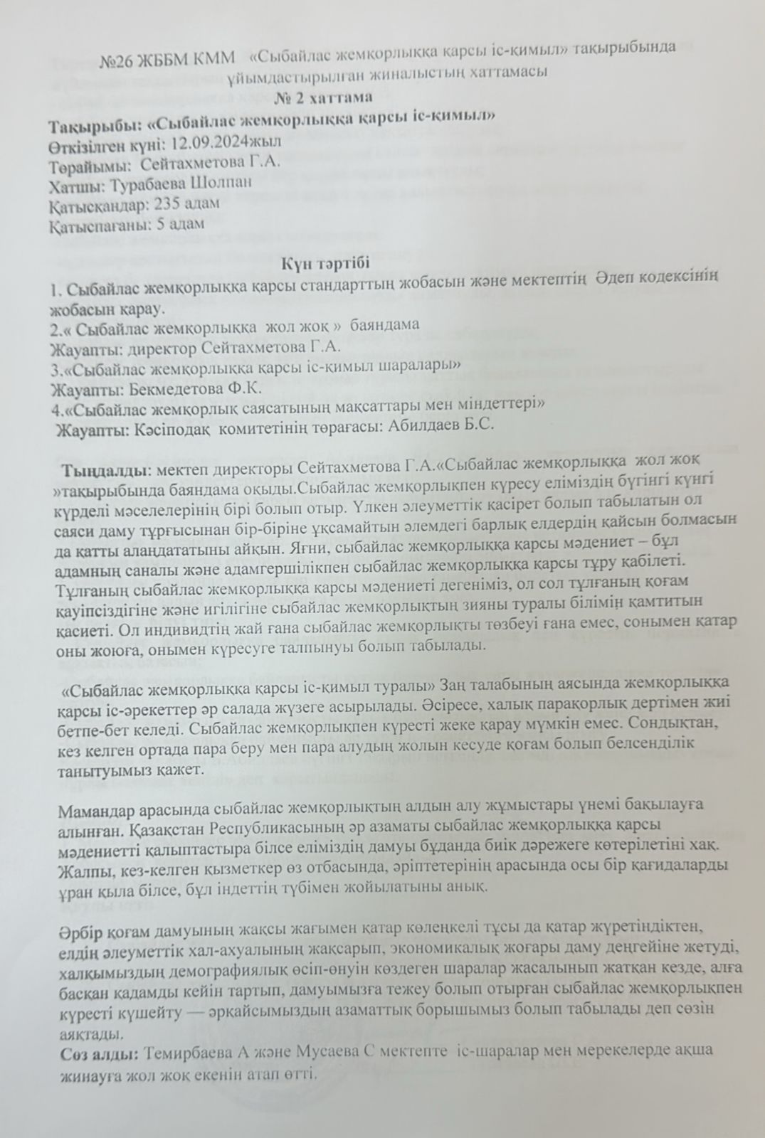 "Сыбайлас жемқорлыққа қарсы іс-қимыл" №2 хаттама