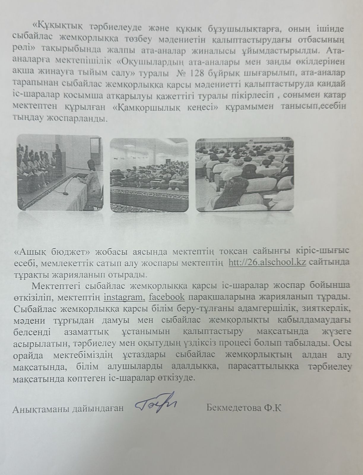 «Парасатты азамат» бұрышы жұмыс жасайды