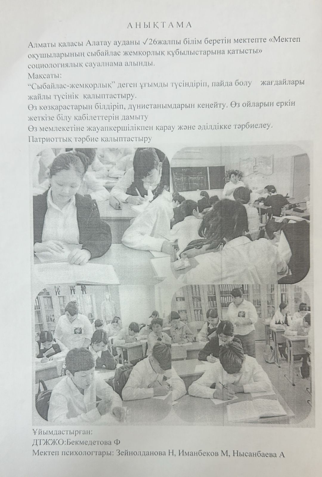 11 ноябрь 2024 0 1 2 3 4 5 "Мектеп оқушыларының сыбайлас жемқорлық құбылыстарына қатысты" социологиялық сауалнама