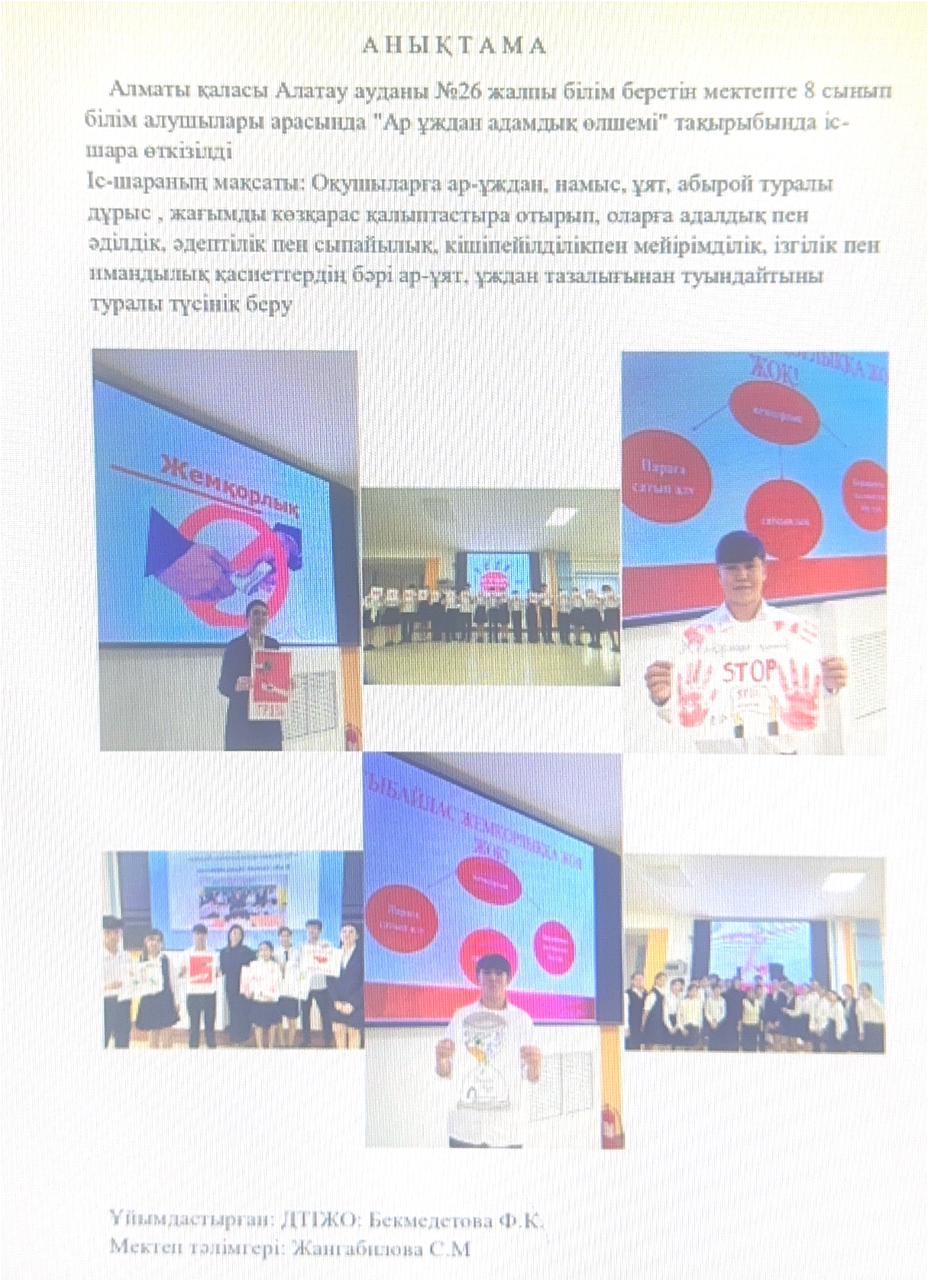 05 декабрь 2024 0 1 2 3 4 5 "Ар ұждан адамдық өлшемі" тақырыбында 8 сыныптар арасында іс-шара өткізілді