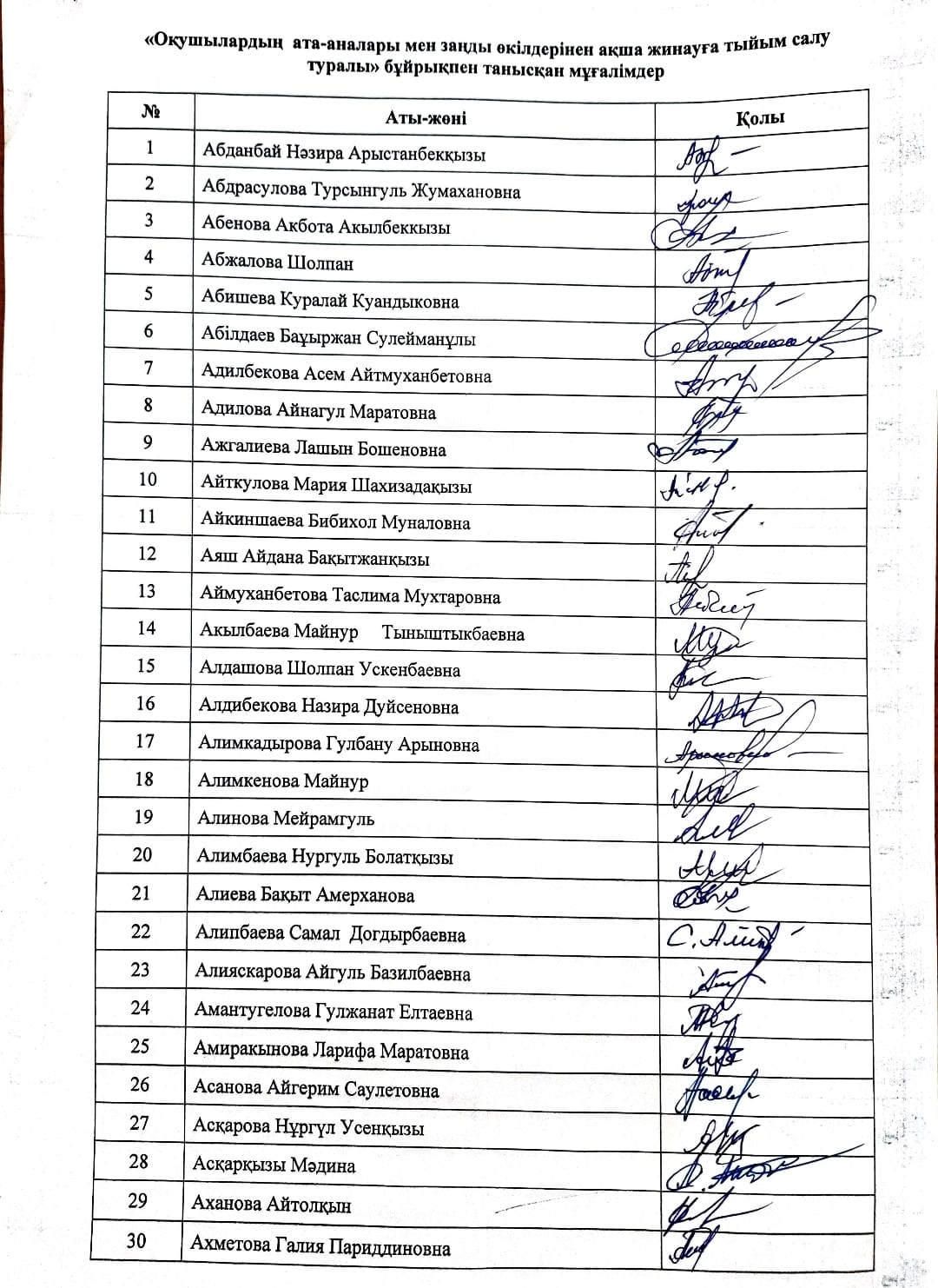 02 сентябрь 2025 0 1 2 3 4 5 Оқушылардың ата-аналары мен заңды өкілдерінен ақша жинауға тыйым салу туралы Бұйрық №91