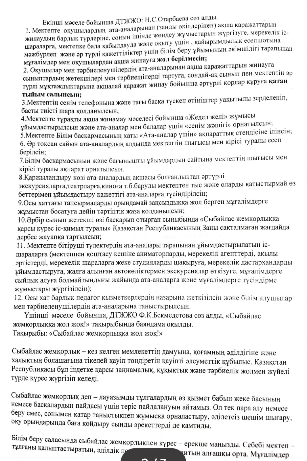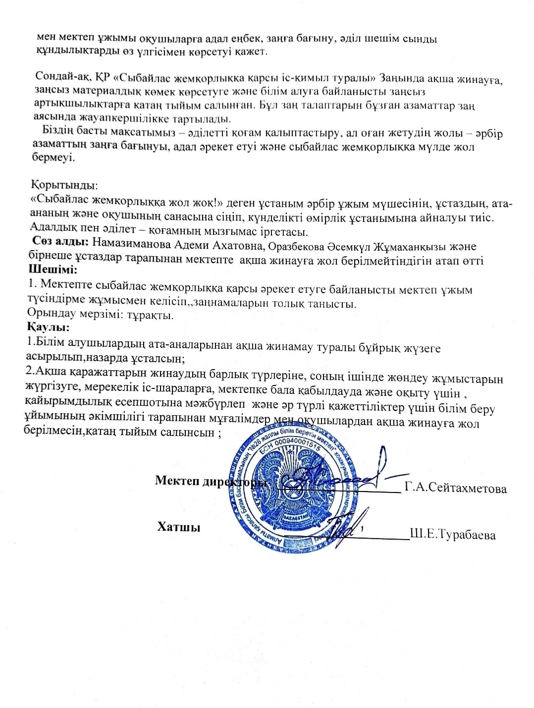 "Сыбайлас жемқорлыққа қарсы іс-қимыл" №2 хаттама