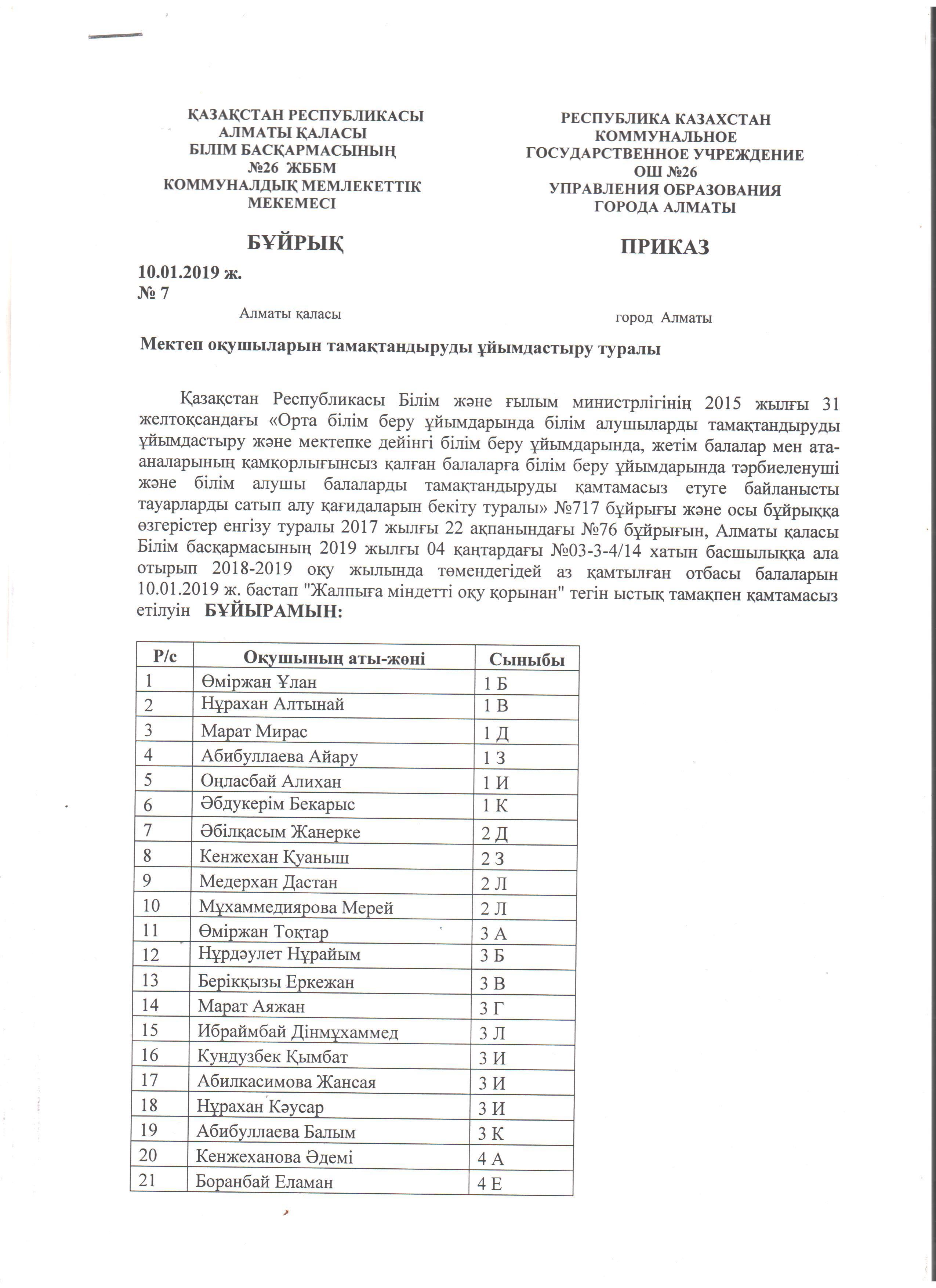 КГУ "Общеобразовательная школа №26" Управления образования города Алматы