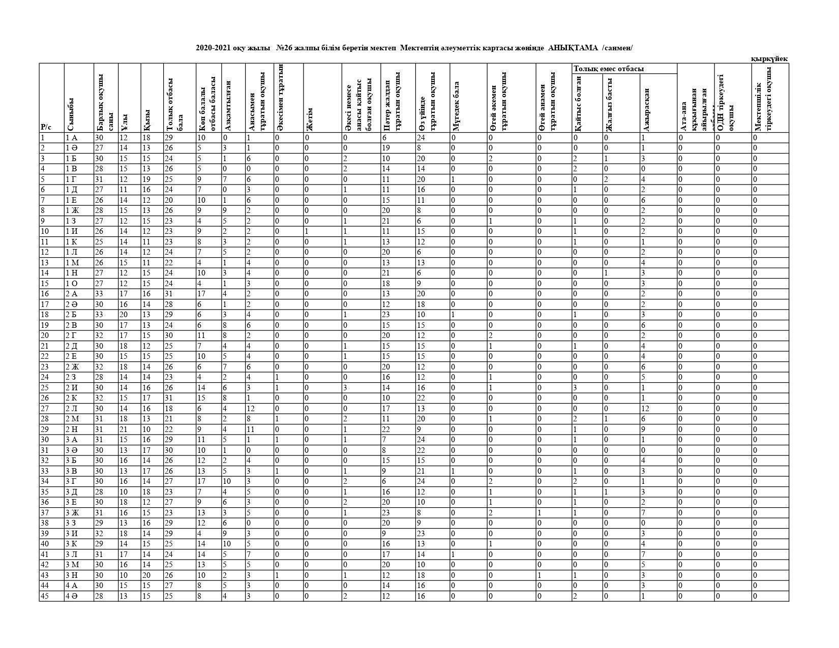 » Мектептің әлеуметтік картасы жөнінде АНЫҚТАМА /санмен/