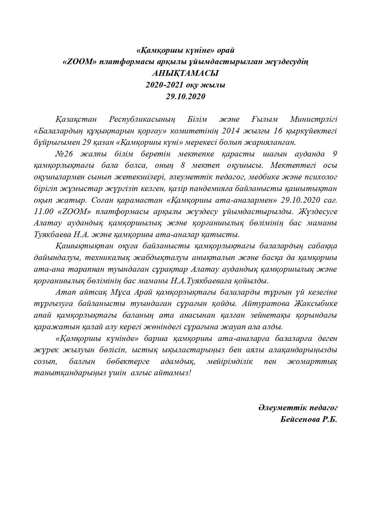 Қарқоршы күніне ұйымдастырылған іс-шараның АНЫҚТАМАСЫ 2019-2020 оқу жылы