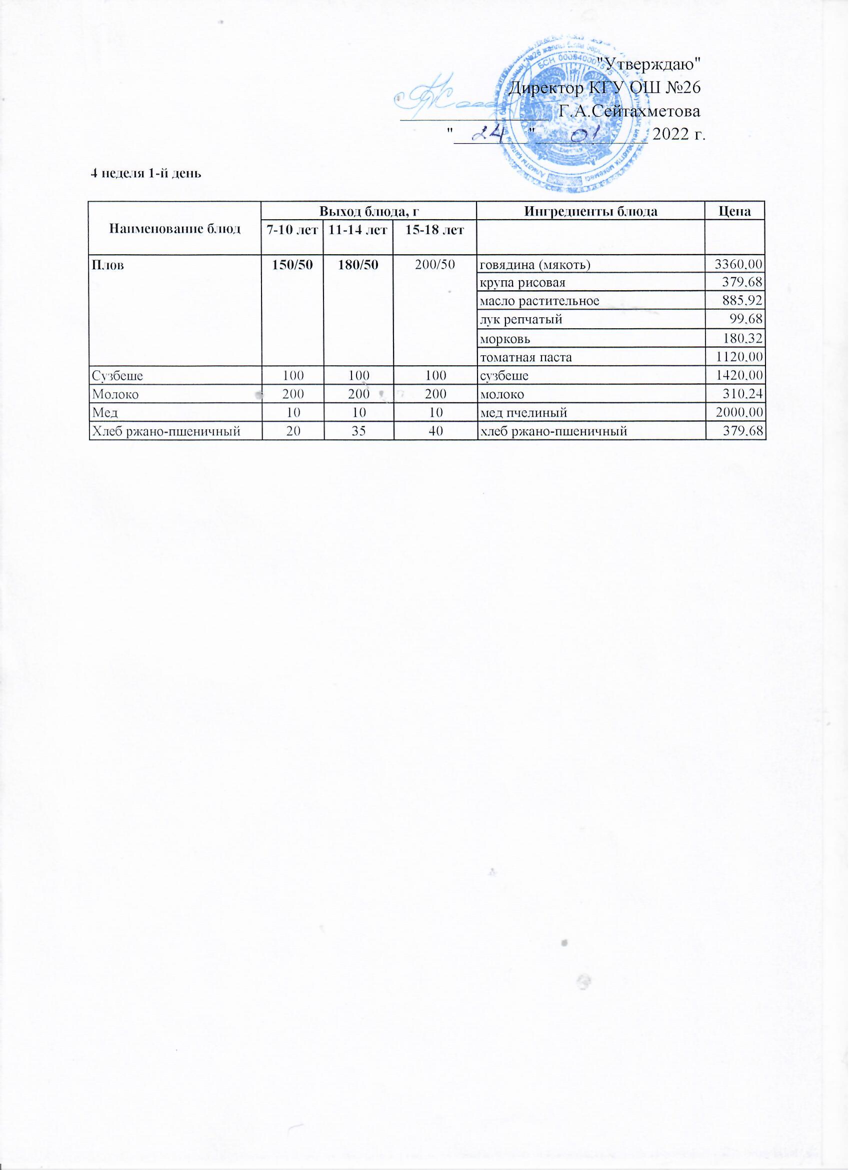ТӨРТ АПТАЛЫҚ АС МӘЗІРІНІҢ 1- АПТАСЫНЫҢ 1-КҮНІ (31.01.2022)