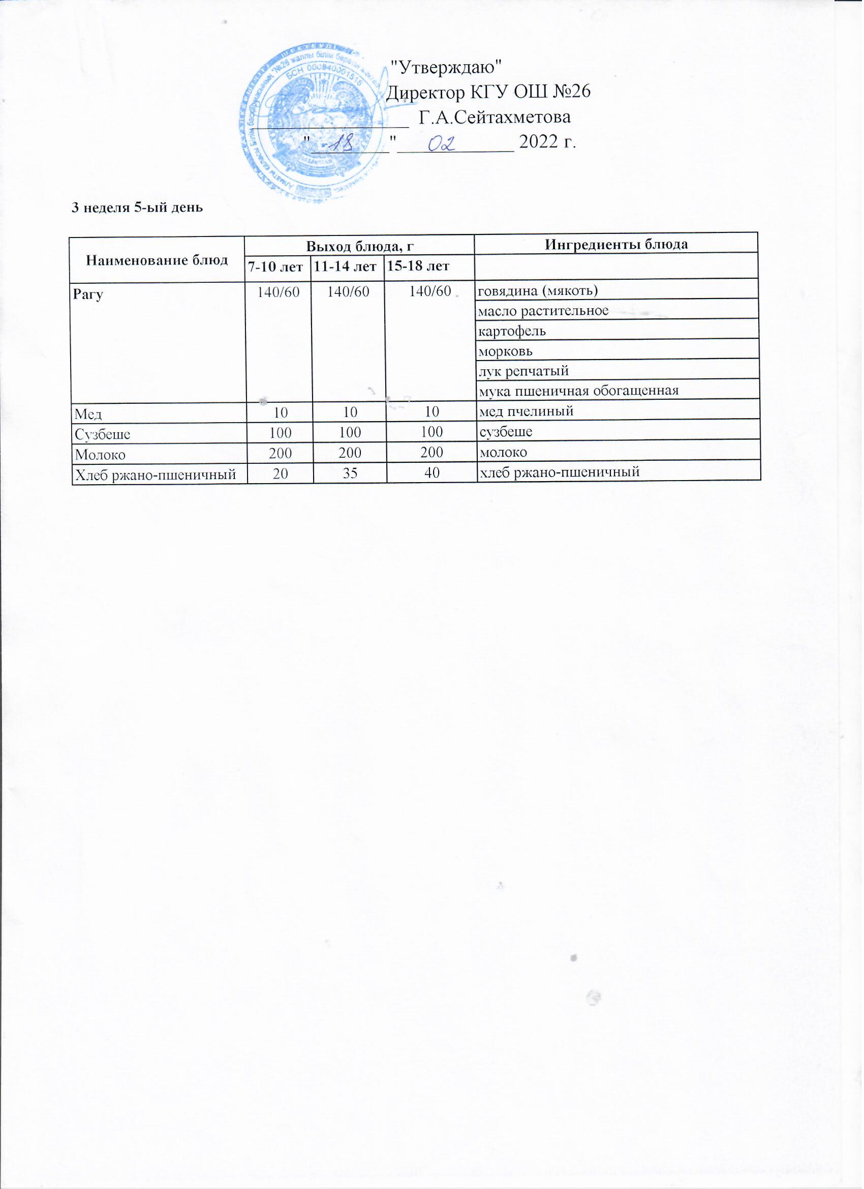 ТӨРТ АПТАЛЫҚ АС МӘЗІРІНІҢ ІІІ- АПТАСЫНЫҢ 5-КҮНІ (18.02.2022)