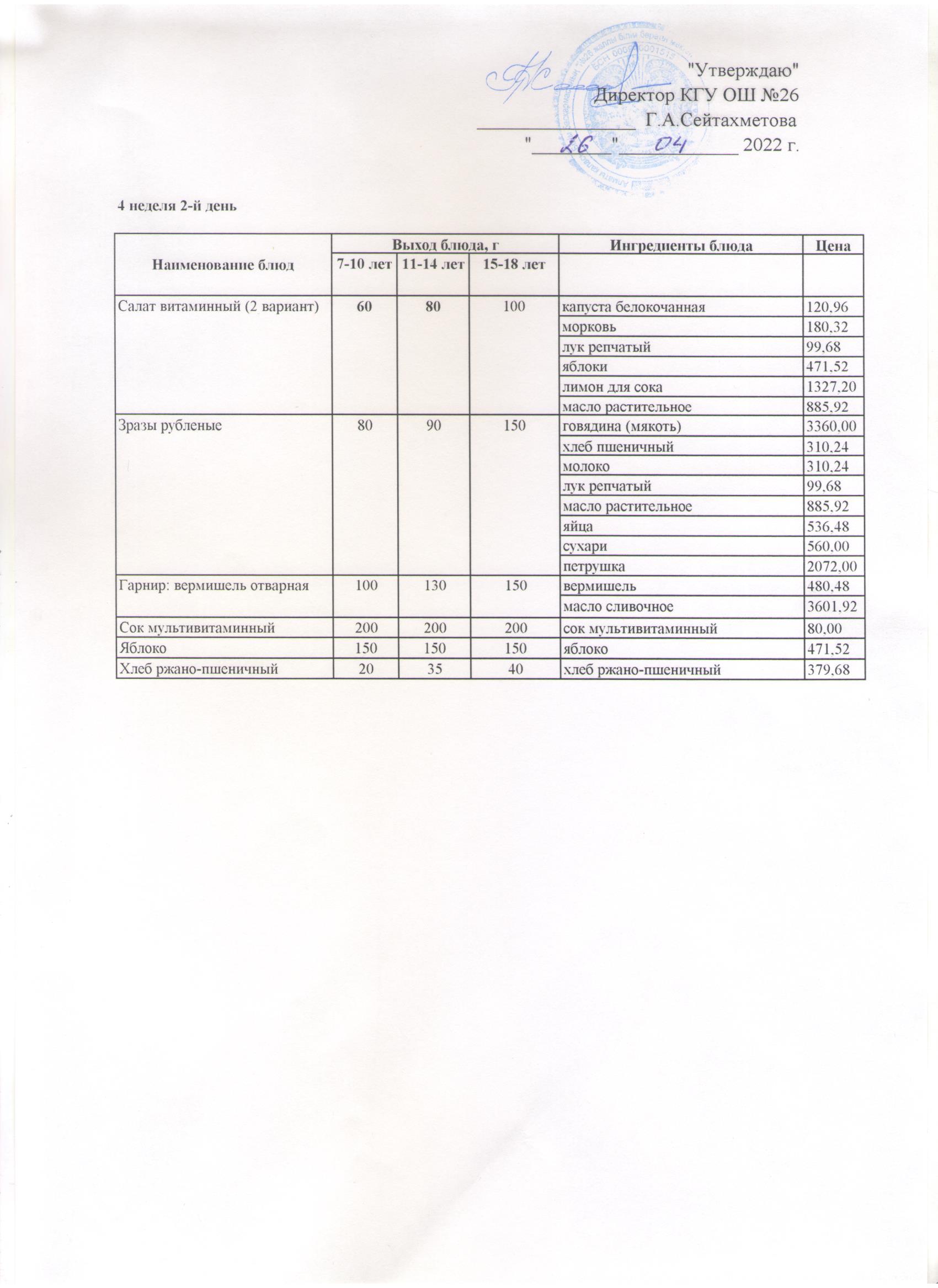 ТӨРТ АПТАЛЫҚ АС МӘЗІРІНІҢ IV- АПТАСЫНЫҢ 2-КҮНІ (26.04.2022)