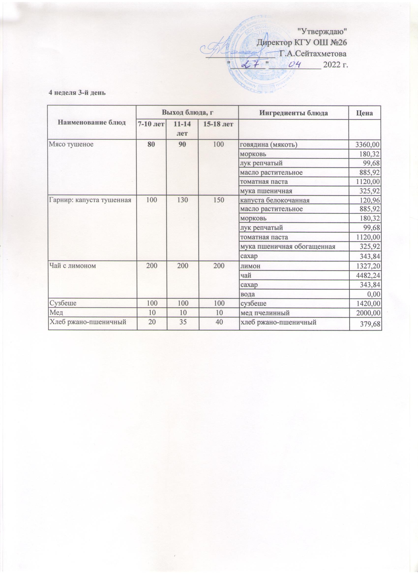 ТӨРТ АПТАЛЫҚ АС МӘЗІРІНІҢ IV- АПТАСЫНЫҢ 3-КҮНІ (27.04.2022)