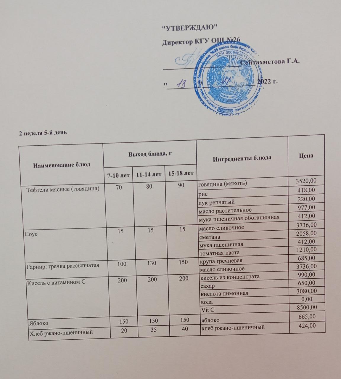 Төрт апталық ас мәзірінің ІІ-аптасының 5-күні (18.11.2022)